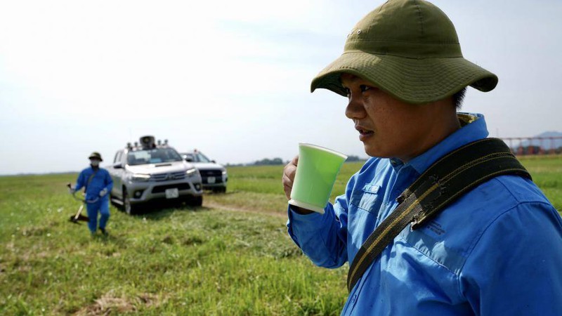 Do điều kiện sân bay nên họ chỉ có quần áo bảo hộ làm việc ngoài sân bê tông giữa cái nắng hơn 40 độ C.