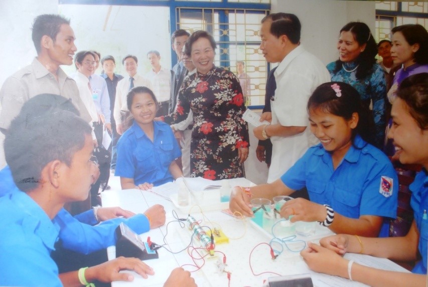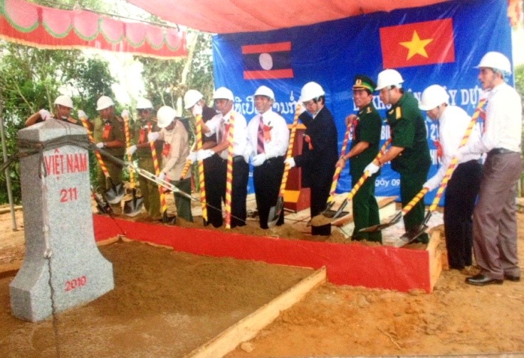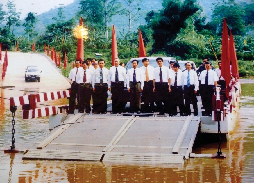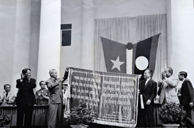 Tháng 7/1977, tại Viêng Chăn, nước CHDCND Lào, TBT Lê Duẩn, Thủ tướng Phạm Văn Đồng thay mặt TW Đảng và Chính phủ Việt Nam trao tặng TW Đảng và Chính phủ Lào bức trướng thêu 4 câu thơ nổi tiếng của Hồ Chủ tịch. |