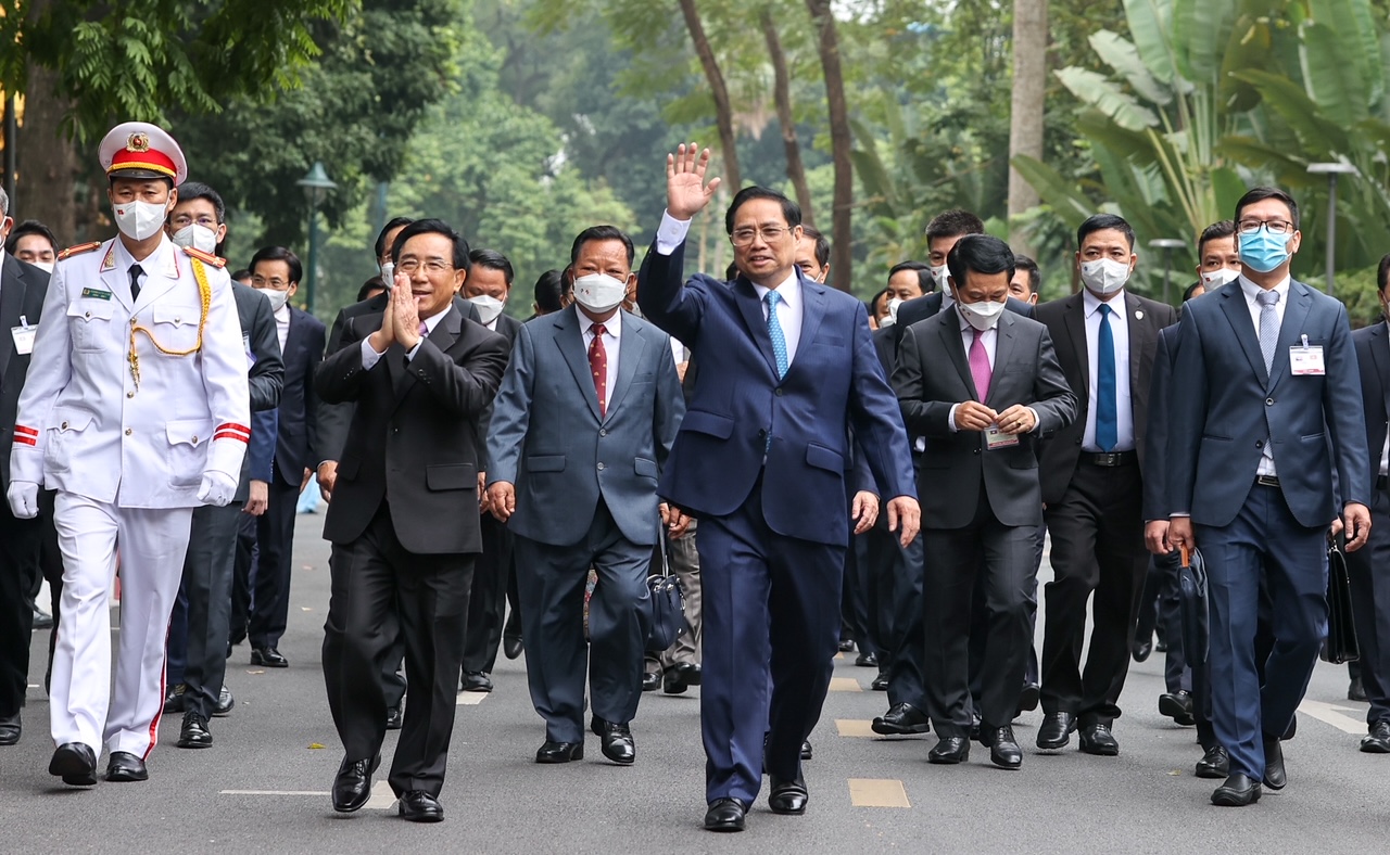 | Chuyến thăm thể hiện quyết tâm của lãnh đạo cấp cao hai nước trong việc thúc đẩy quan hệ đặc biệt Việt Nam-Lào đi vào chiều sâu, thiết thực và triển khai hiệu quả tuyên bố chung Việt Nam-Lào tháng 6/2021 đồng thời là sự kiện ý nghĩa đầu tiên trong khuôn khổ Năm Đoàn kết hữu nghị Việt Nam-Lào, Lào-Việt Nam. Ảnh: VGP/Nhật Bắc |