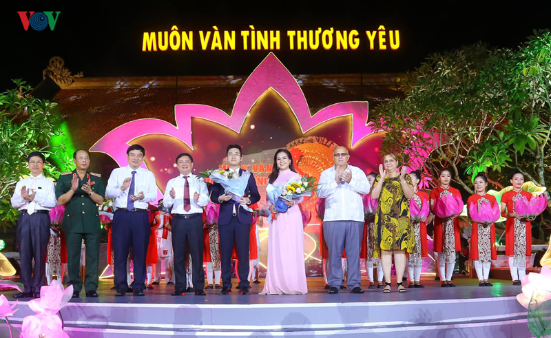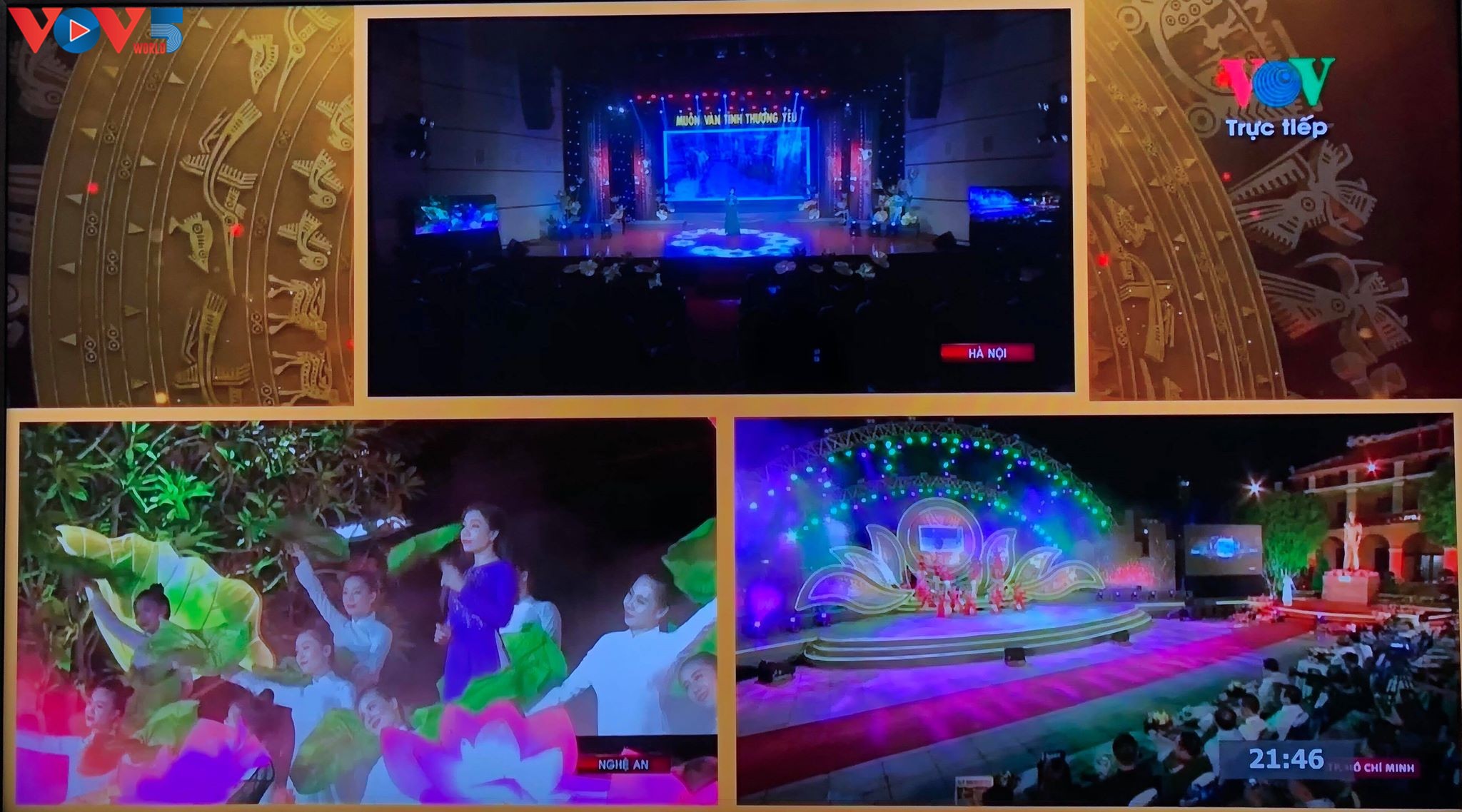 Tối 21/8, cầu phát thanh - truyền hình “Muôn vàn tình thương yêu”, một Chương trình Chính luận - Nghệ thuật đặc biệt kỷ niệm 50 năm ngày Chủ tịch Hồ Chí Minh đi xa, 50 năm người dân Việt Nam thực hiện Di chúc của Người đã được diễn ra tại 3 điểm cầu: Nhà hát Đài Tiếng nói Việt Nam (58 Quán Sứ, Hà Nội), khu Di tích lịch sử quốc gia đặc biệt Kim Liên (huyện Nam Đàn, tỉnh Nghệ An) và khu Di tích Bến Nhà Rồng (Thành phố Hồ Chí Minh).