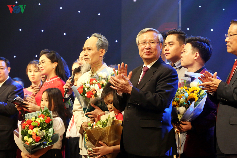 Đến dự chương trình có ông Phan Đình Trạc, Bí thư Trung ương Đảng, Trưởng Ban Nội chính Trung ương; ông Nguyễn Xuân Thắng, Bí thư Trung ương Đảng, Chủ tịch Hội đồng Lý luận Trung ương, Giám đốc Học viện Chính trị quốc gia Hồ Chí Minh; các Ủy viên Trung ương Đảng: ông Uông Chu Lưu, Phó Chủ tịch Quốc hội; ông Hầu A Lềnh, Phó Chủ tịch, Tổng Thư ký UBTƯ MTTQ Việt Nam; ông Đào Việt Trung, Bộ trưởng, Chủ nhiệm Văn phòng Chủ tịch nước; ông Nguyễn Ngọc Thiện, Bộ trưởng Bộ Văn hóa, Thể thao và Du lịch; Thượng tướng Nguyễn Trọng Nghĩa, Phó Chủ nhiệm Tổng cục Chính trị QĐND Việt Nam; ông Điểu K'Ré, Phó Trưởng Ban thường trực Ban Dân vận Trung ương; bà Nguyễn Thị Thu Hà, Chủ tịch Trung ương Hội LHPN Việt Nam. Ảnh: Trọng Phú