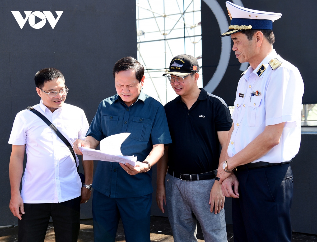 Kiểm tra khu vực sân khấu và khán đài tại Quân cảng Nha Trang, Chuẩn Đô đốc Phạm Văn Luyện, Phó Chủ nhiệm Chính trị Quân chủng Hải quân bày tỏ yên tâm vì công tác chuẩn bị đến thời điểm của Quân chủng Hải quân, nhất là Học viện Hải quân và các đơn vị đóng chân trên địa bàn thành phố Nha Trang và Cam Ranh đã gần hoàn tất; đồng thời đề nghị các đơn vị rà soát lại tất cả các bước thật kỹ lưỡng để đảm bảo chương trình diễn ra thành công.
