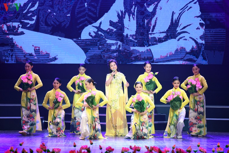 Ca sĩ Bùi Lê Mận thể hiện ca khúc "Đêm nghe hát đò đưa nhớ Bác".