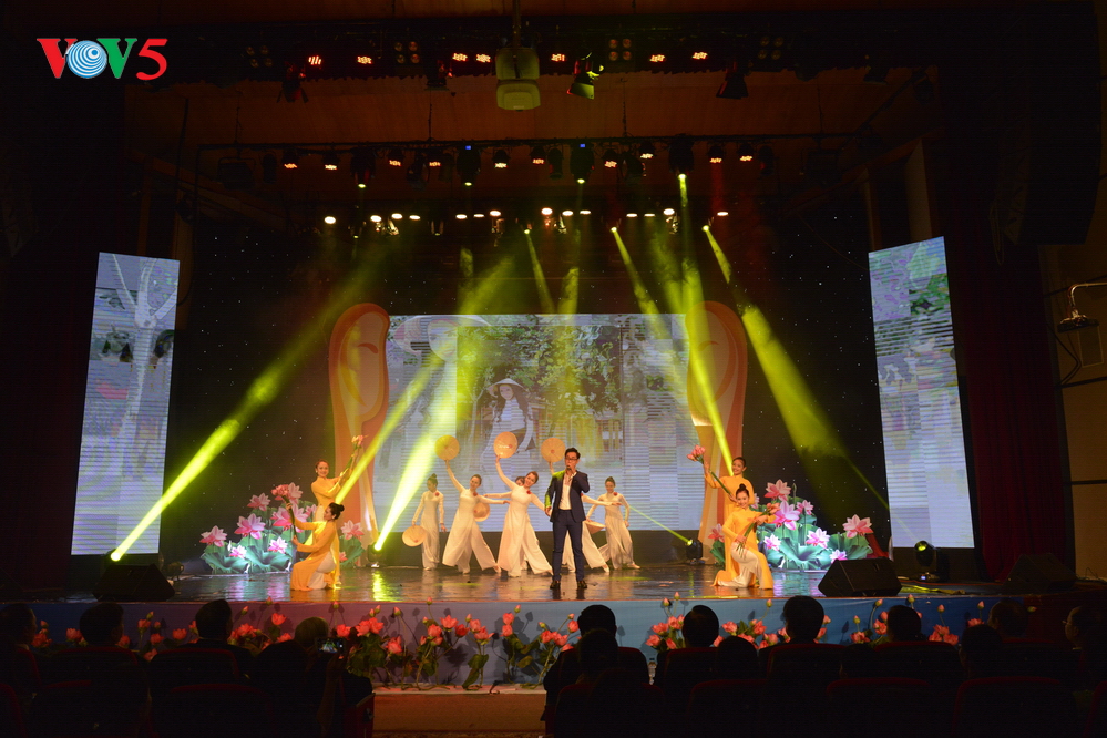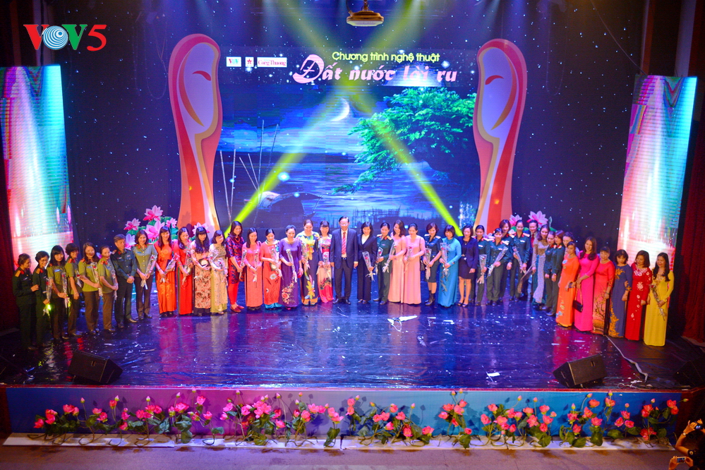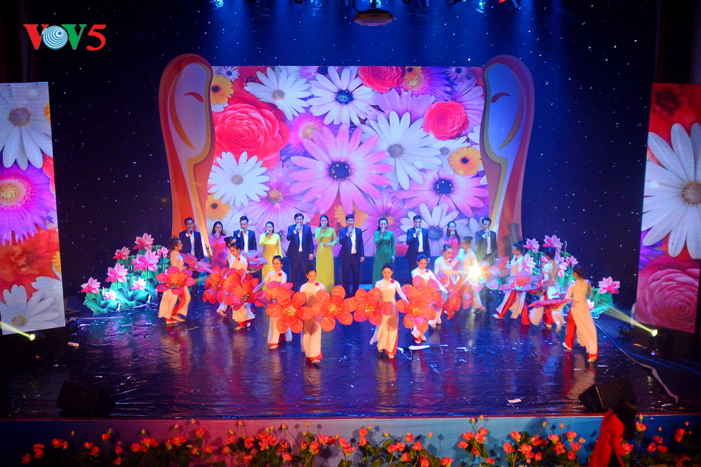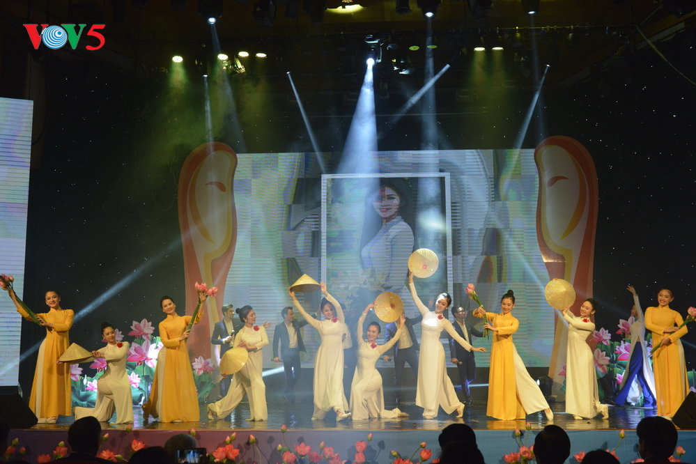 | Chương trình biểu diễn nghệ thuật gồm ba phần chính: Phụ nữ Việt Nam hay lam hay làm; Phụ nữ Việt Nam anh hùng bất khuất; Bài ca người phụ nữ Việt Nam. |