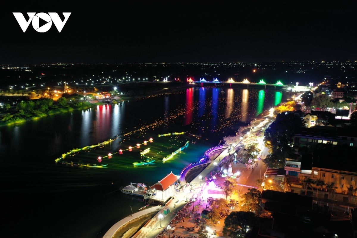 Chương trình diễn ra ở đầu cầu bến thả hoa đăng trên sông Thạch Hãn