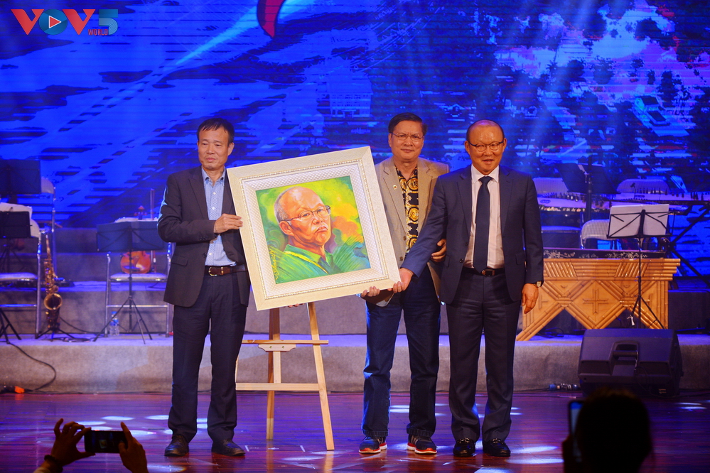 Ông Park Hang Seo chia sẻ, quá nửa số học trò trong đội tuyển quốc gia và đội U23 của ông sinh ra và lớn lên từ mảnh đất miền Trung. Chính vì vậy, ngay khi được biết về chương trình, ông rất nhiệt tình tham gia. Thông qua chương trình, ông mong muốn được trực tiếp gửi tấm lòng yêu thương của mình đến với đồng bào miền Trung, quê hương của các cầu thủ, các học trò và của rất nhiều người yêu quý ông và đội tuyển. Trên sân khấu, ông Park Hang Seo cũng thông qua VOV, trao tặng một bộ dụng cụ học tập trị giá 3.000 USD tới một trường học khó khăn ở miền Trung.