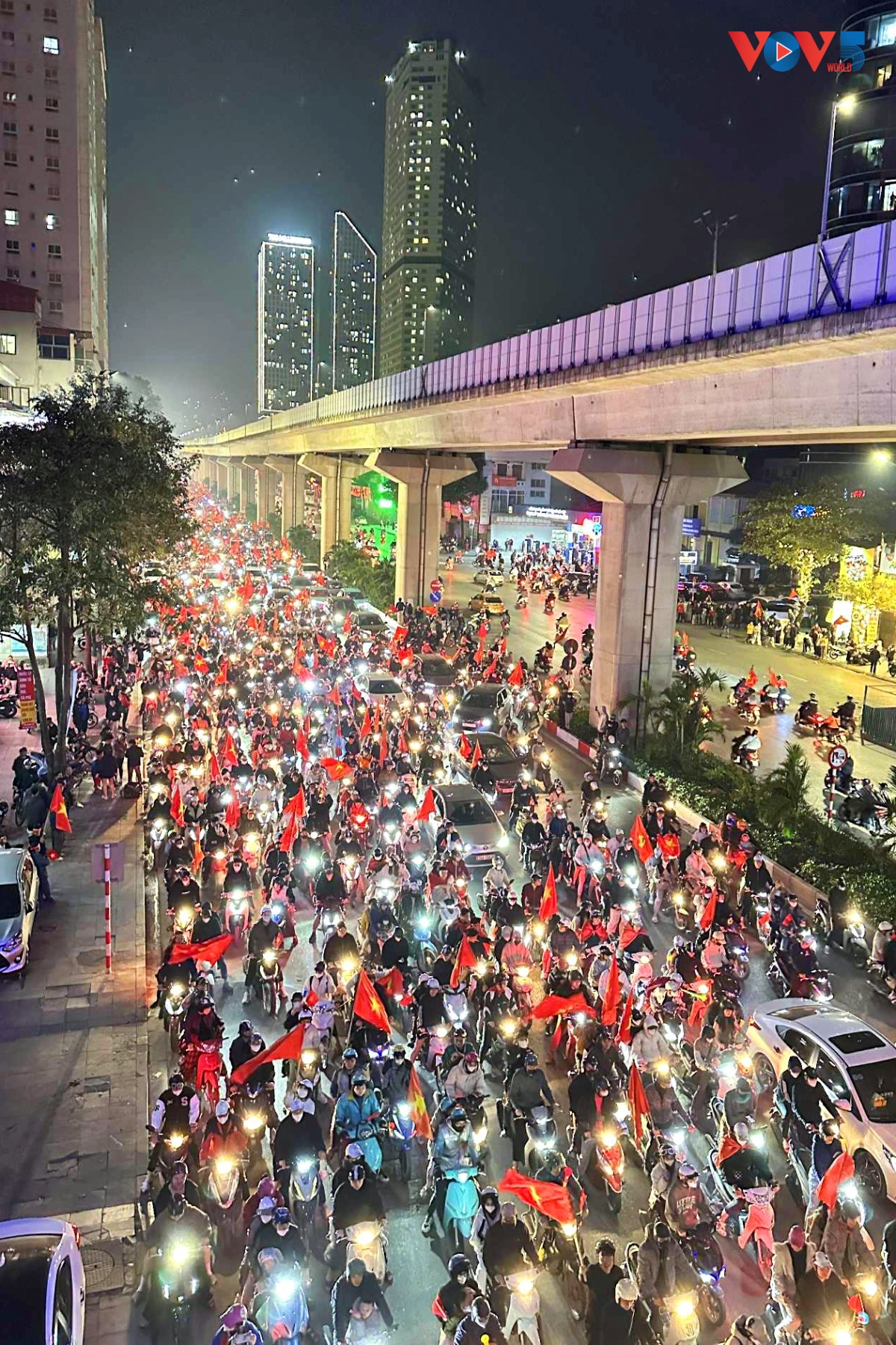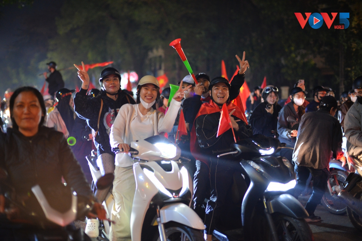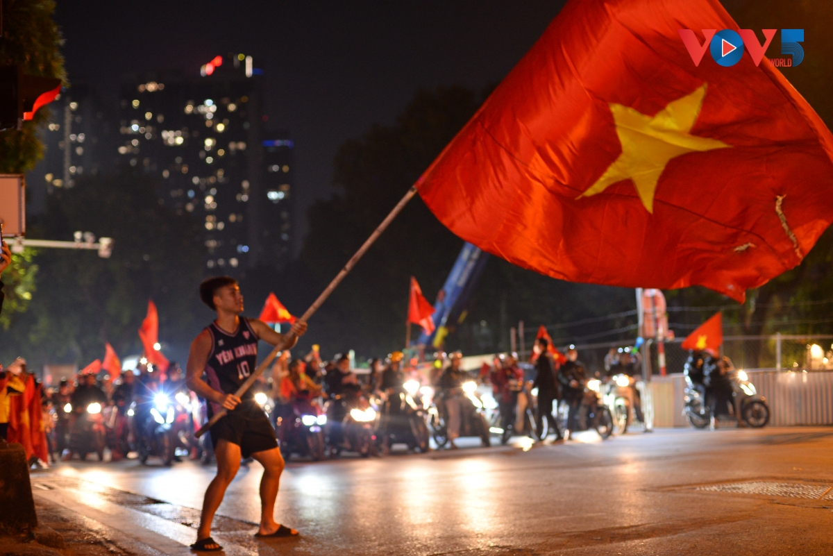 [VOV5] - Hàng nghìn người hâm mộ tại Hà Nội vỡ òa cảm xúc, đổ ra đường reo hò ăn mừng khi U22 Việt Nam chiến thắng U22 Thái Lan, giành huy chương vàng bóng đá nam SEA Games 33.