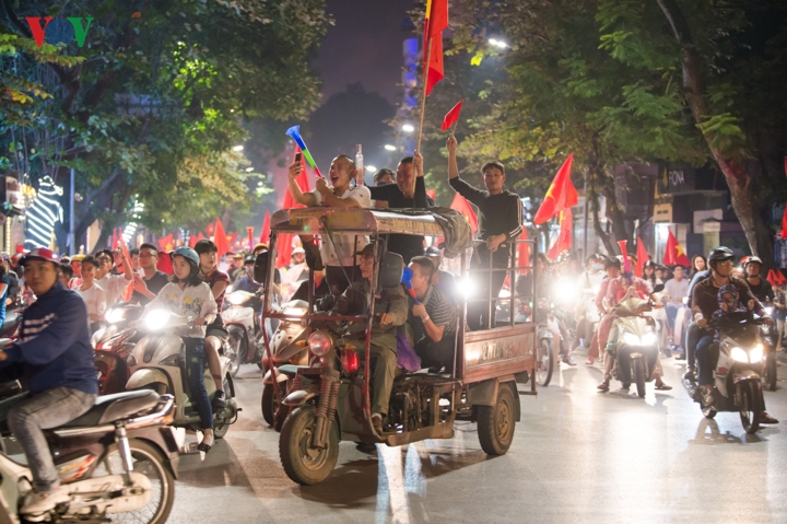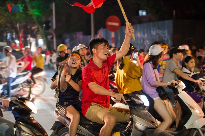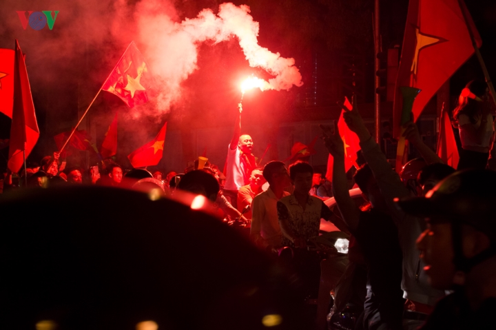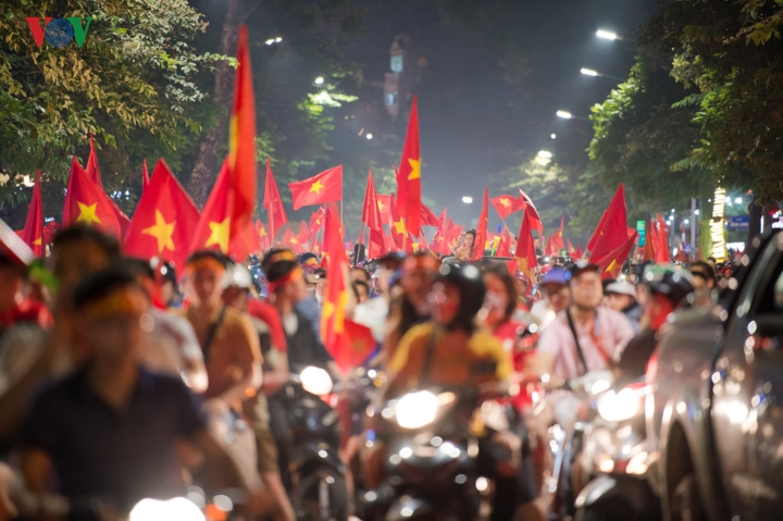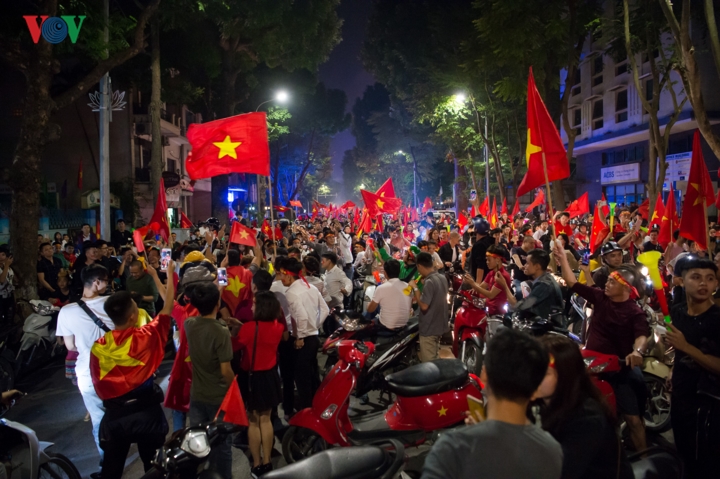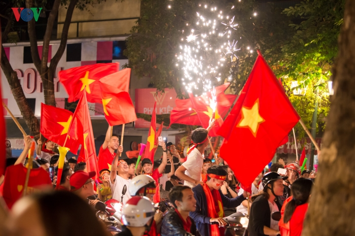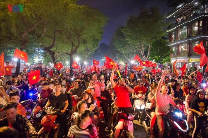 Tối 6/12, ngay sau khi tiếng còi kết thúc trận đấu giữa ĐT Việt Nam và ĐT Philippines tại trận bán kết lượt về AFF Cup 2018 diễn ra tại Mỹ Đình, hàng nghìn cổ động viên đã đổ ra đường ăn mừng chiến thắng.