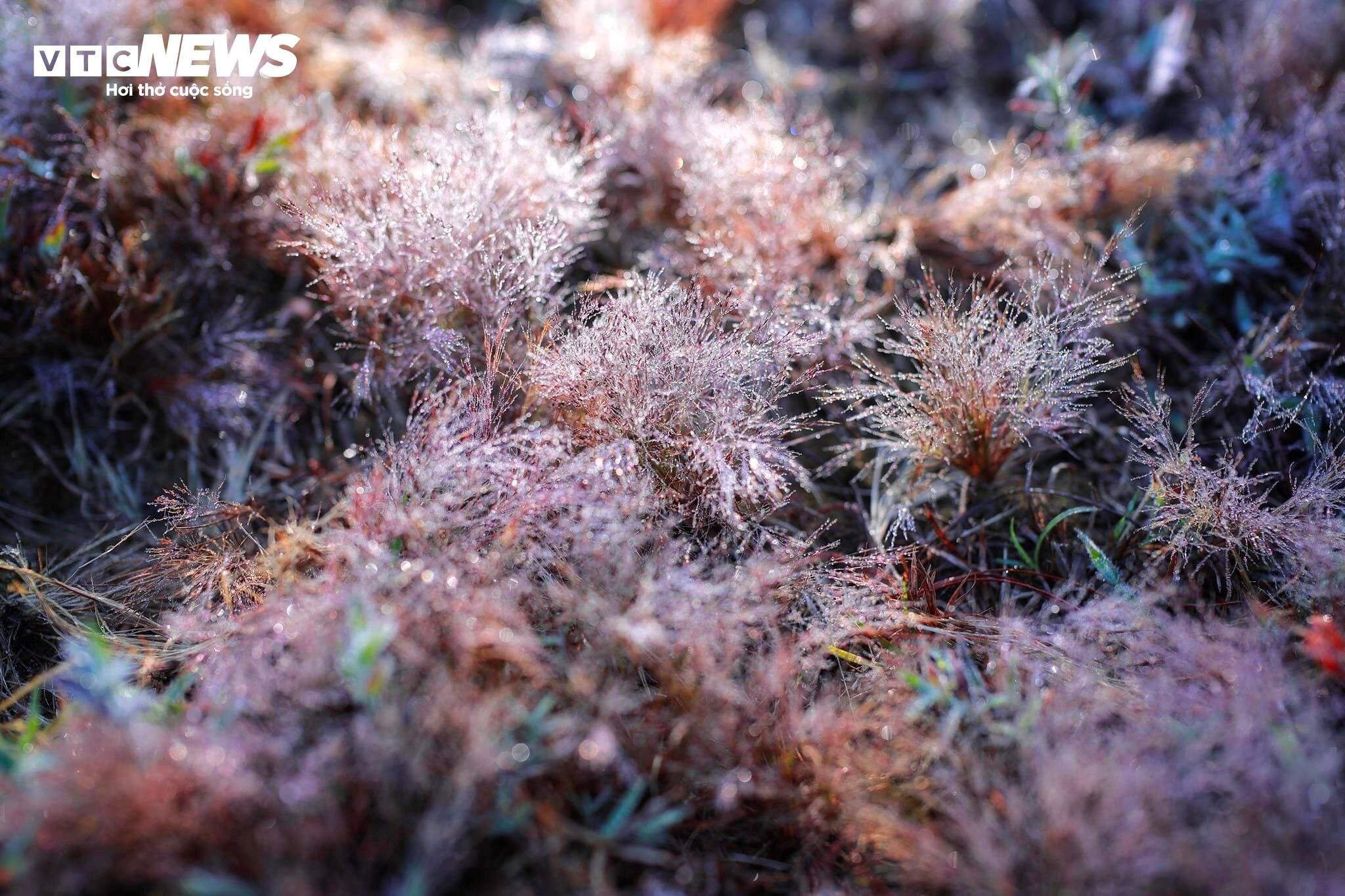 Vào sáng sớm, những hạt sương còn đọng dày trên cỏ, ánh lên dưới nắng nên nhiều người còn gọi là cỏ tuyết. |