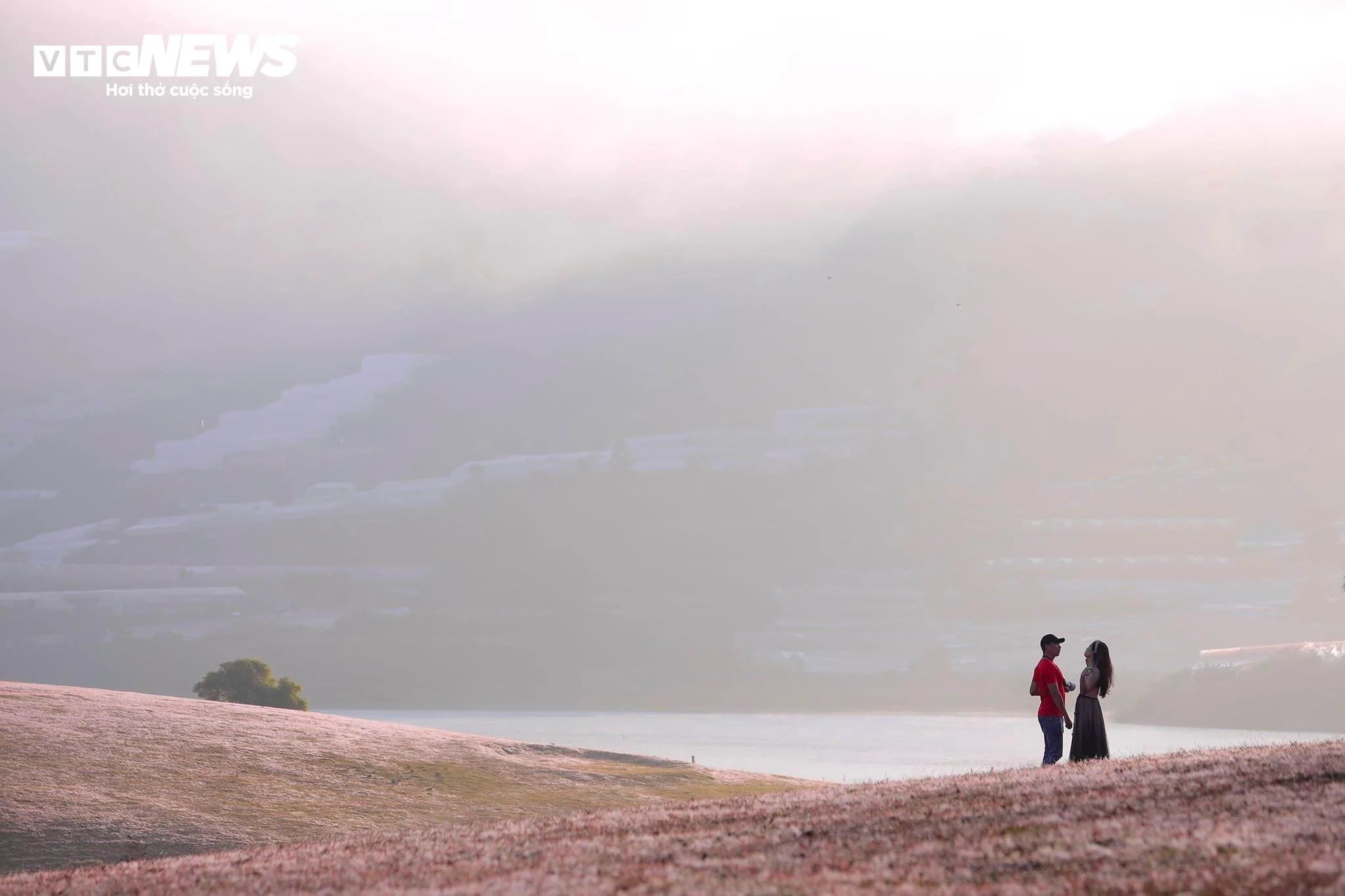 Mùa cỏ hồng ở cao nguyên Lâm Đồng thu hút lượng lớn du khách ở mọi lứa tuổi nhiều tỉnh thành tìm đến. Du khách thường tới đây từ sớm để ngắm bình bình, chụp ảnh với cỏ hồng. |