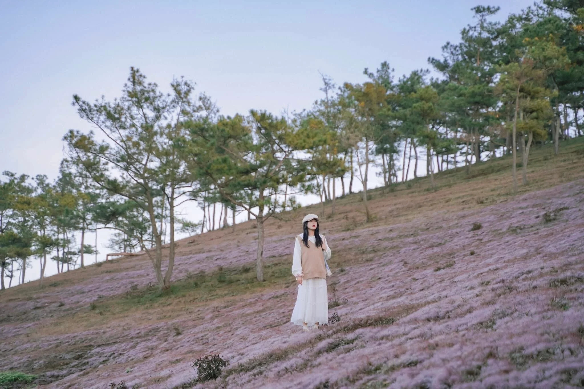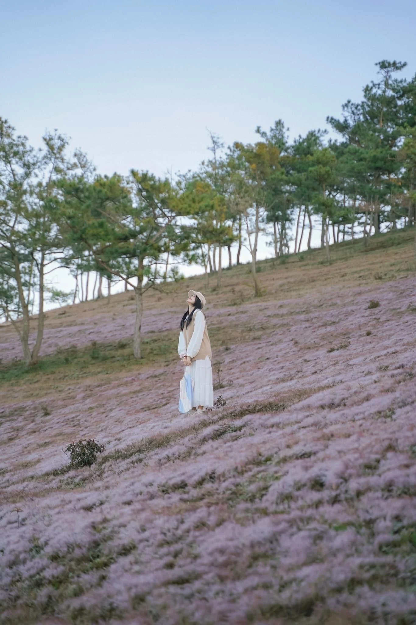 Là một blogger cá nhân, bạn Phương Tali cũng tranh thủ lưu lại những tấm hình vào mùa cỏ hồng đẹp nhất. “Cỏ nở kín vùng đồi, khung cảnh như được khoác lên một lớp áo màu hồng trông rất đẹp”, Phương Tali bày tỏ. |