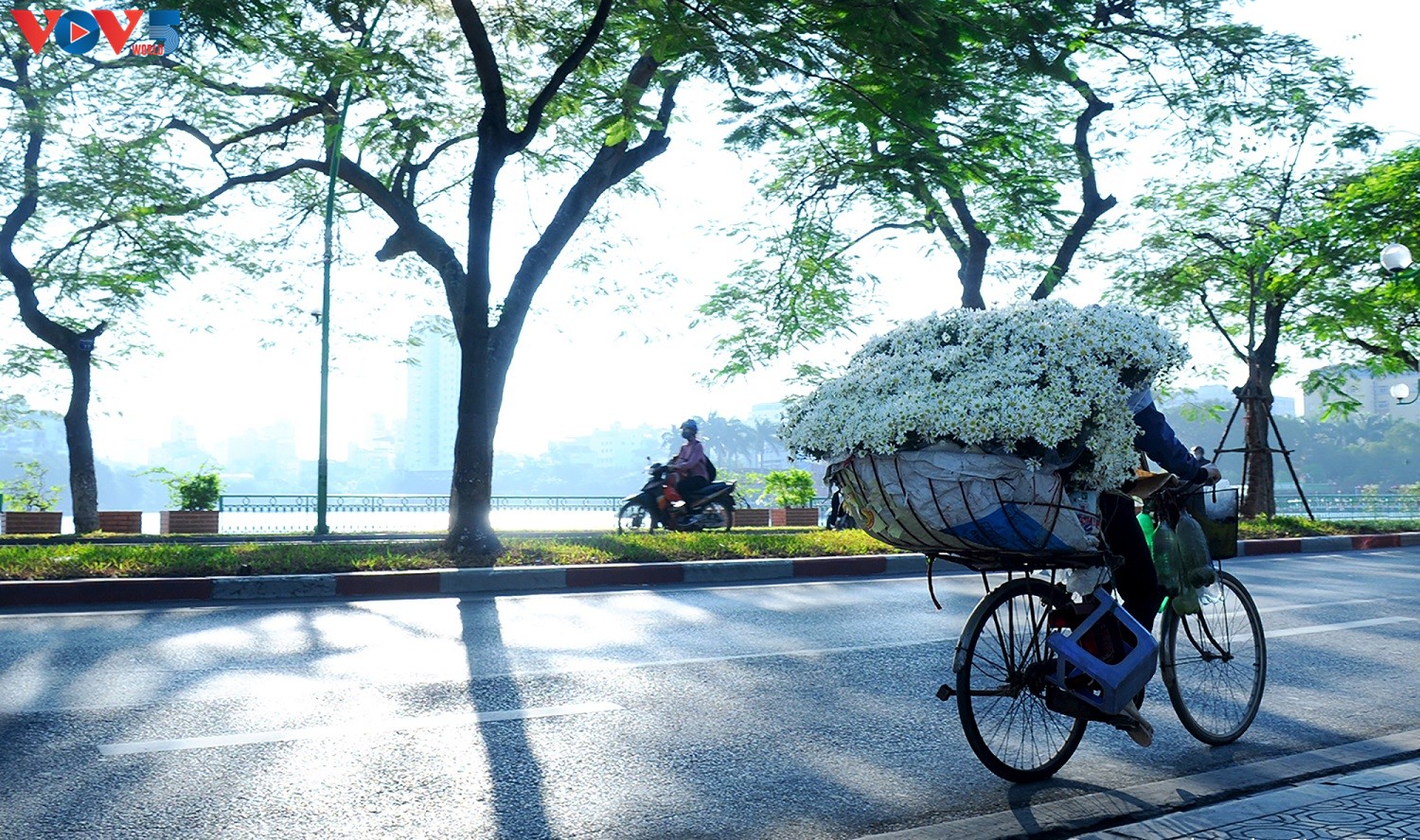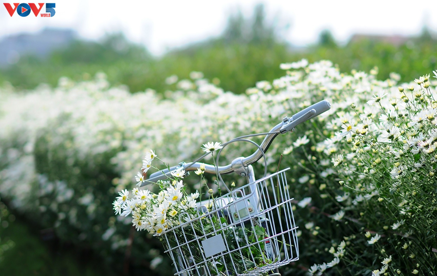Khắp các nẻo đường, đâu đâu người ta cũng dễ dàng bắt gặp những chiếc xe đạp chở theo cả một vùng trắng thanh khiết của cúc Họa mi.