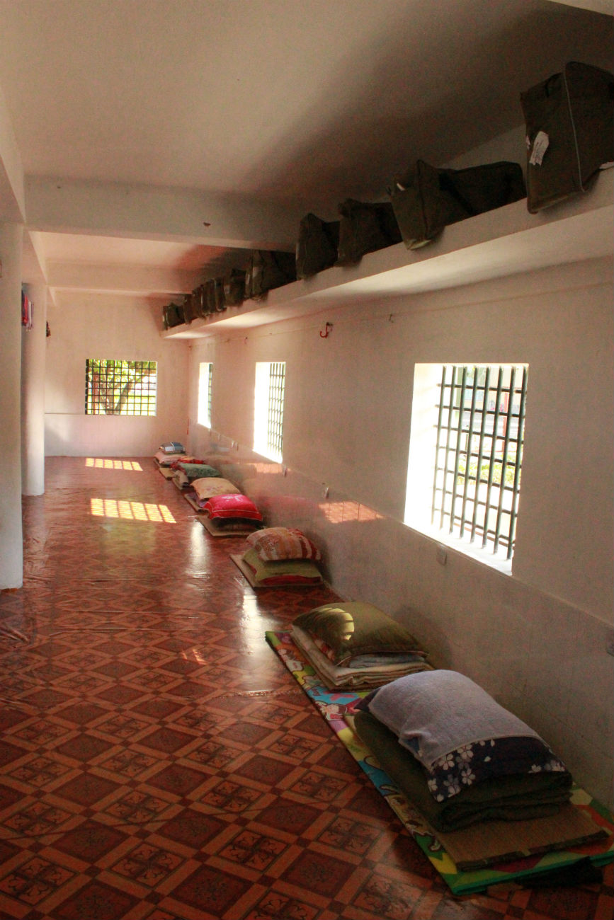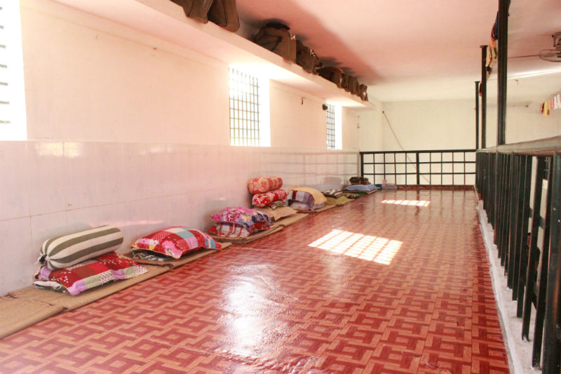 Một dãy gác xép ngủ ở tầng hai. Mỗi phạm nhân đều có chăn, màn, gối, chiếu riêng và một túi đựng tư trang để trên kệ phía trên chỗ mình ngủ.