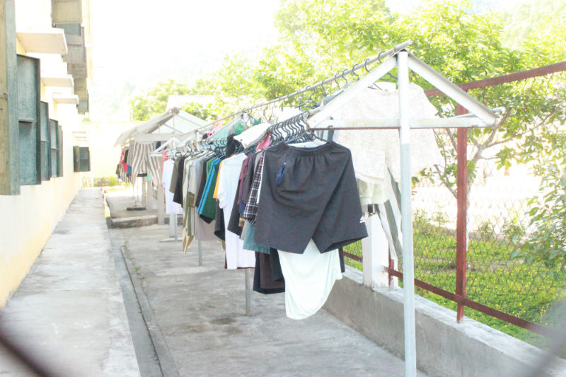 Sau mỗi dãy nhà đều được thiết kế hệ thống dây phơi nhiều tầng ngoài trời, đủ để phạm nhân phơi các loại quần, áo, chăn màn.