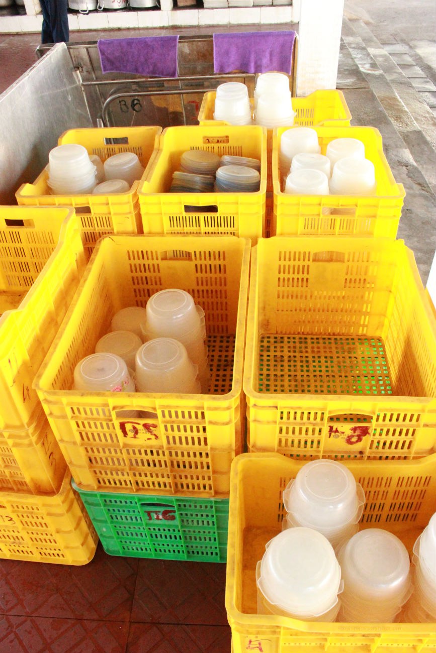 Canh cũng được đựng trong các hộp nhựa riêng, mỗi người một hộp
