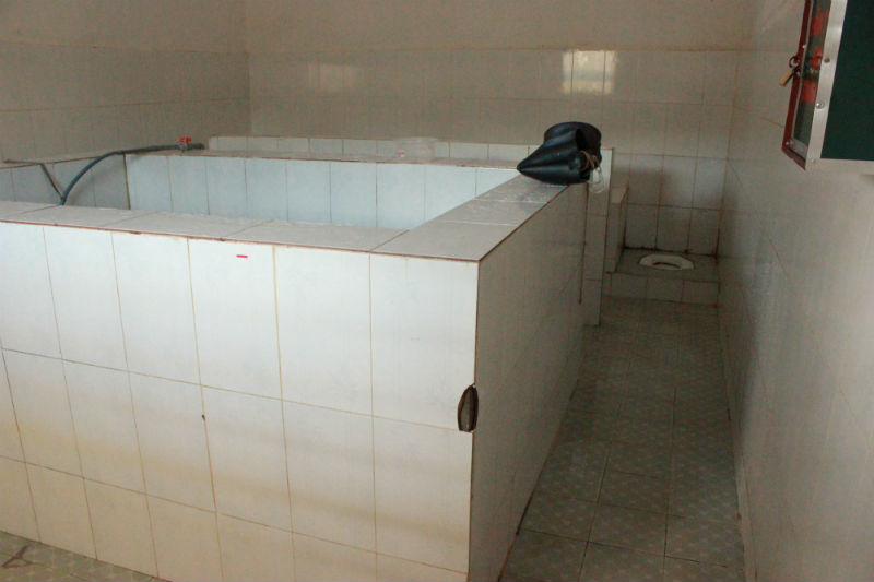 Cuối dãy nhà là một phòng vệ sinh chung gồm hai bể nước lớn dành cho phạm nhân tắm, giặt và khu đại tiểu tiện phía trong cùng. Cảm nhận chung là sạch sẽ.