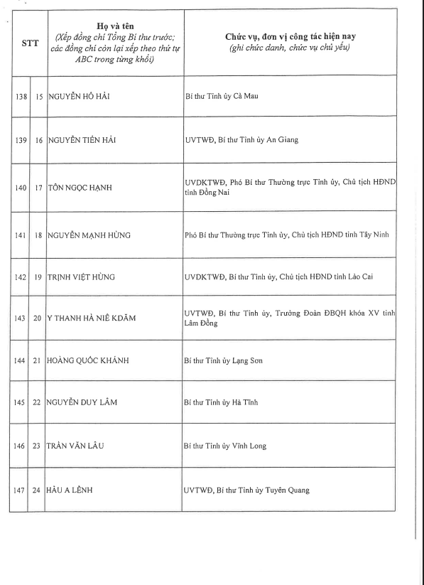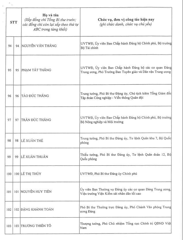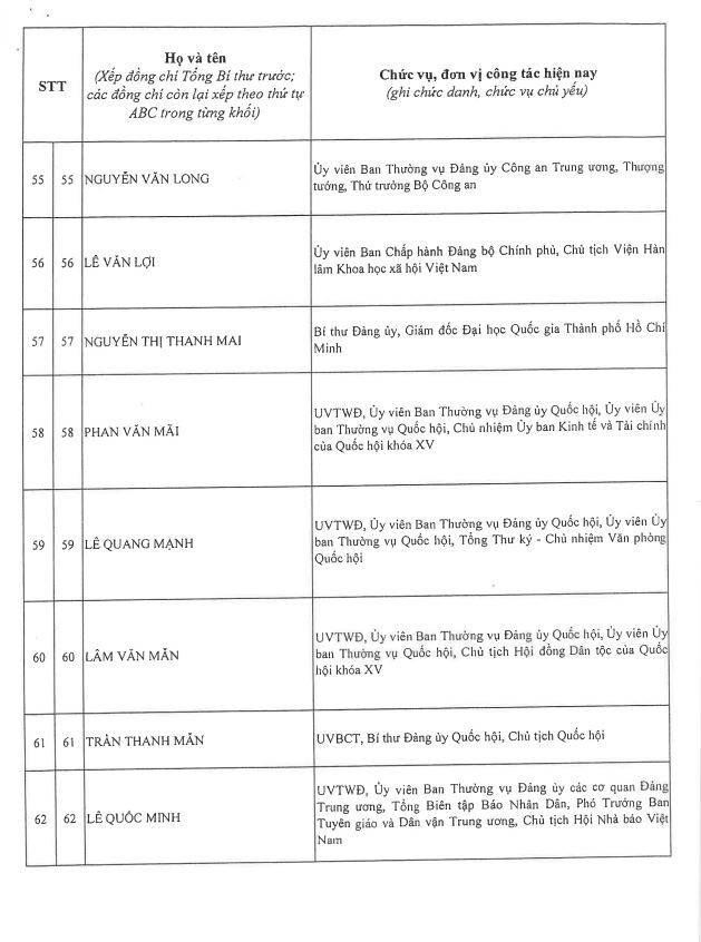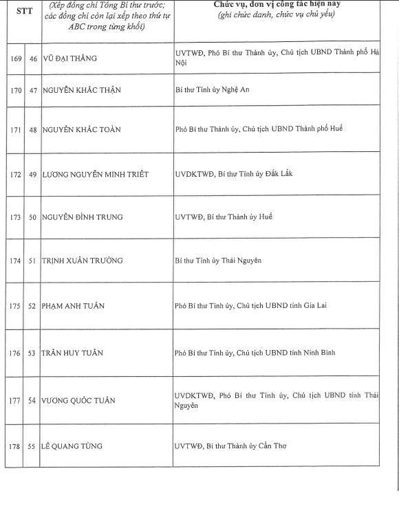 Công bố danh sách Ban Chấp hành Trung ương Đảng khóa XIV