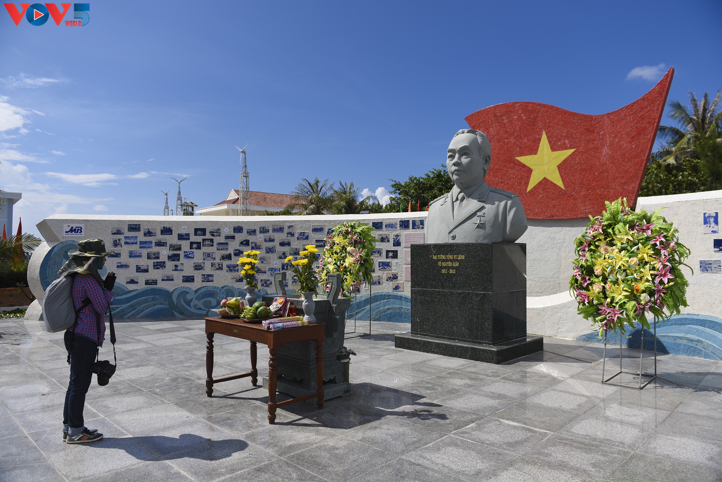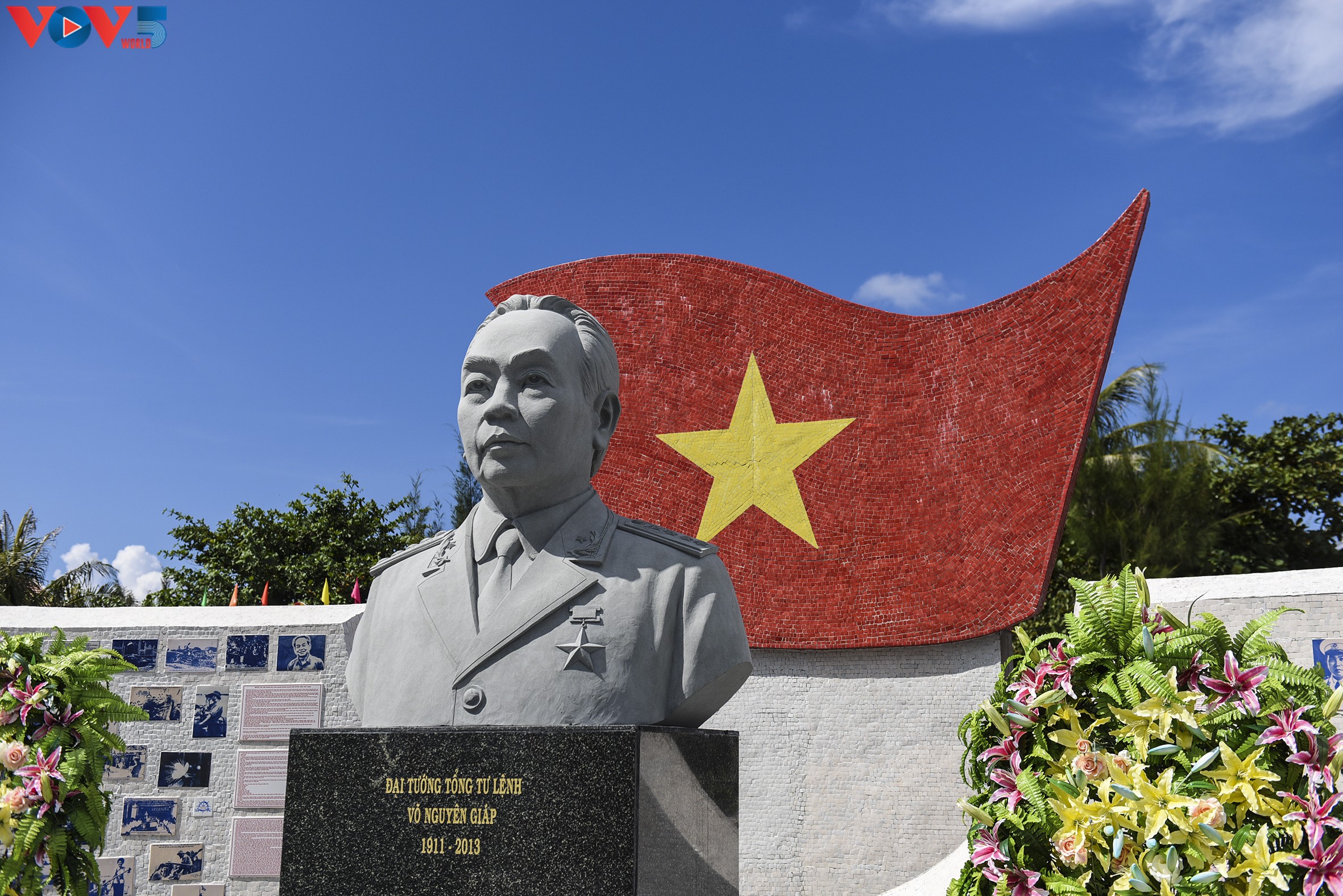 Công viên Đại tướng Võ Nguyên Giáp ở vị trí mặt tiền gần chính giữa đảo. Nhìn từ xa đã có thể nhận ra nhờ bức tượng Đại tướng uy nghi cùng lá cờ đỏ sao vàng nổi bật trên nền xanh của trời và biển. |