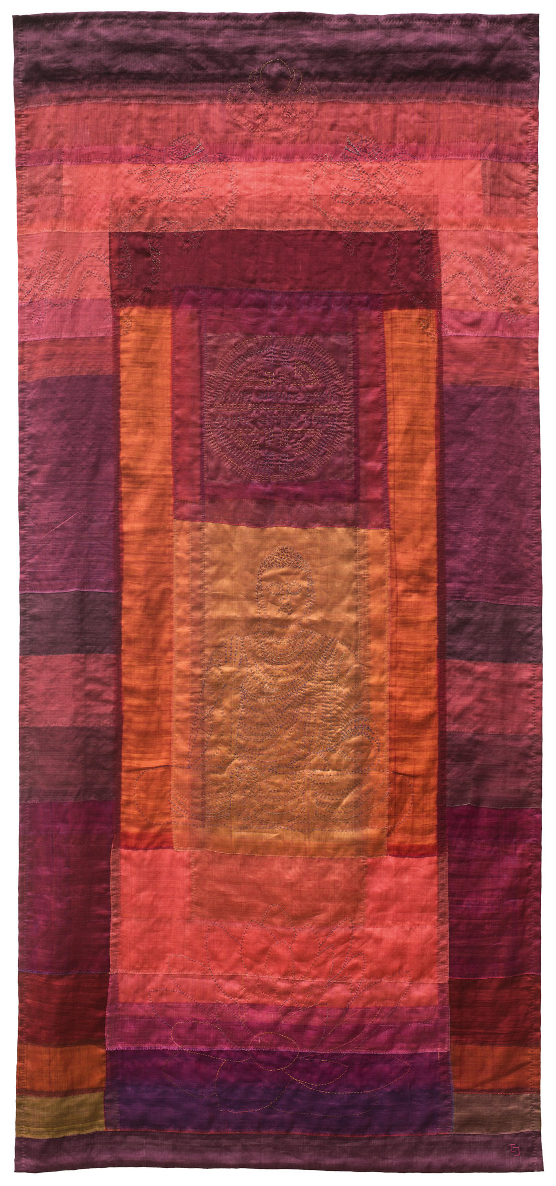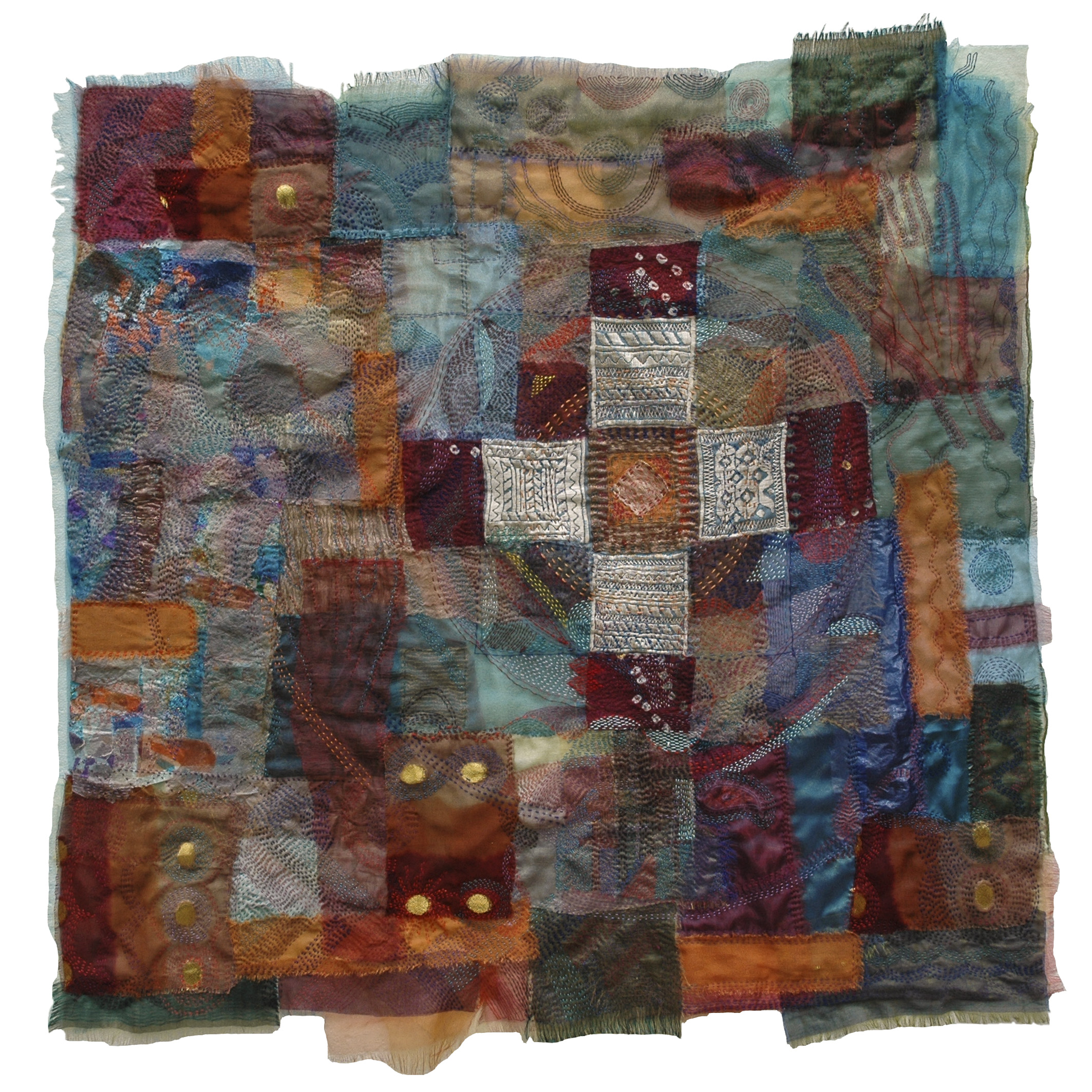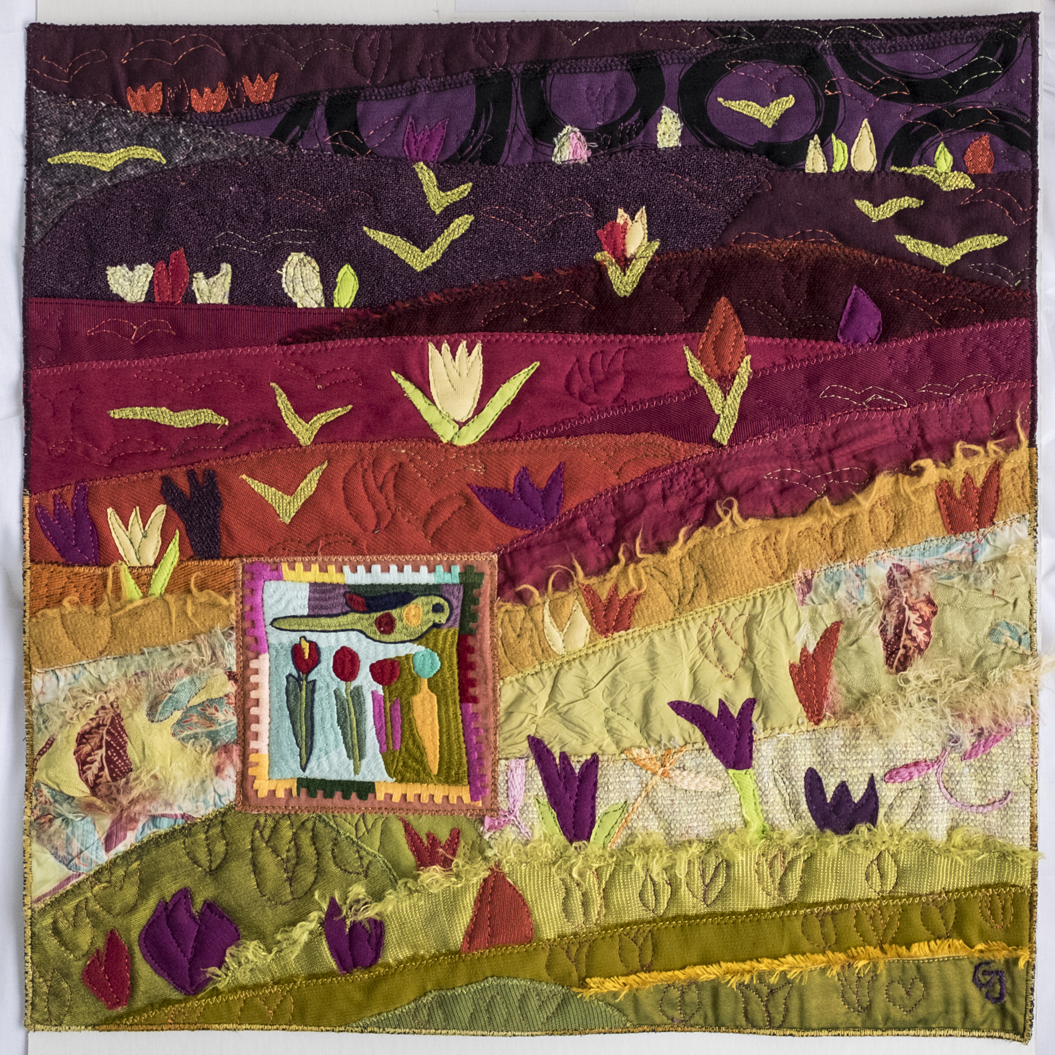 Thêu cũng là một tác nhân không thể thiếu trong suốt hành trình ấy. Các tác phẩm của Catherine Juillerat làm nổi bật cả hai phương tiện truyền thống - sự mỏng manh của vải và nét phức tạp trong thêu. Tác phẩm: Giai điệu mùa xuân - Catherine Juillerat. |
