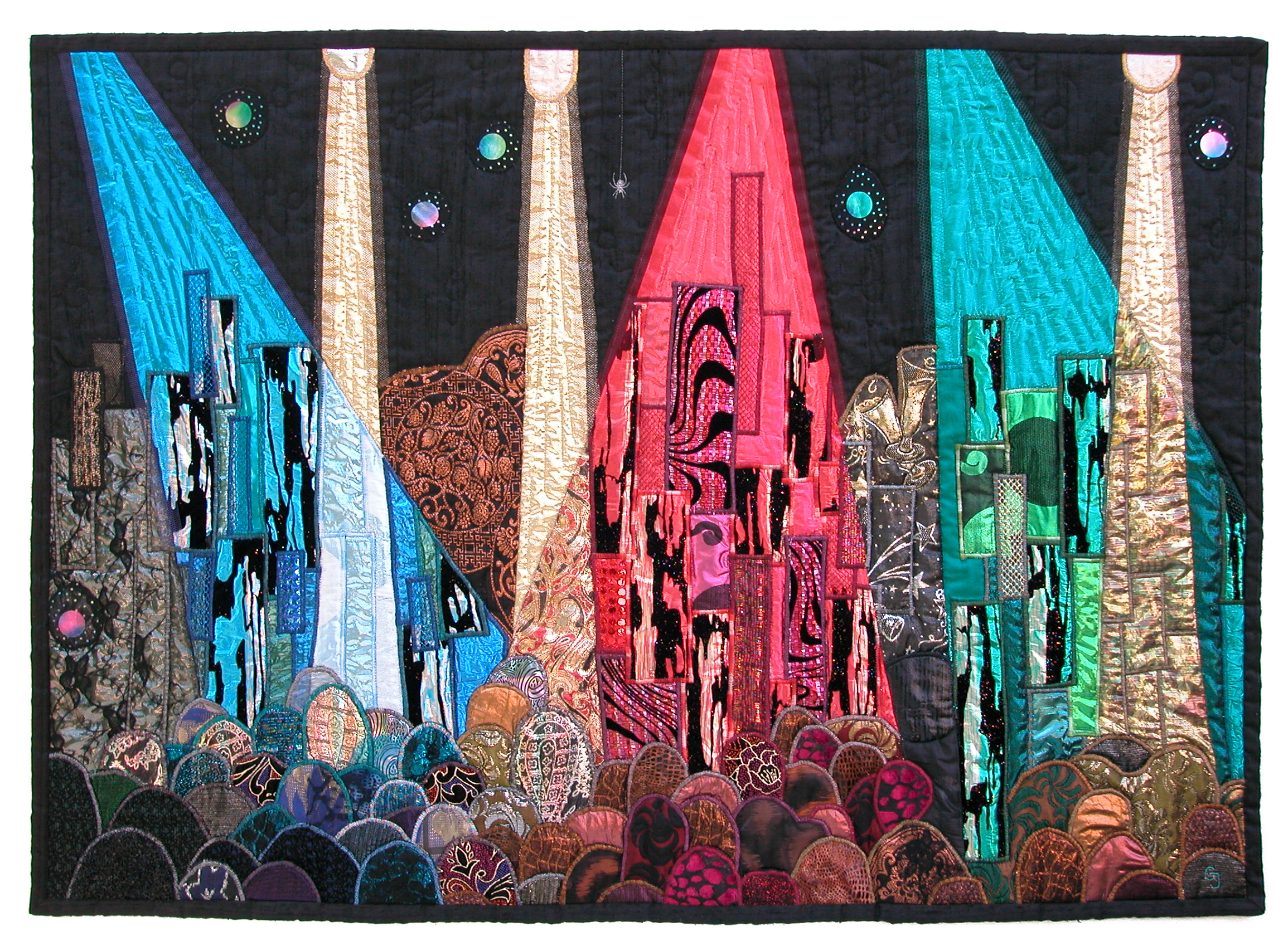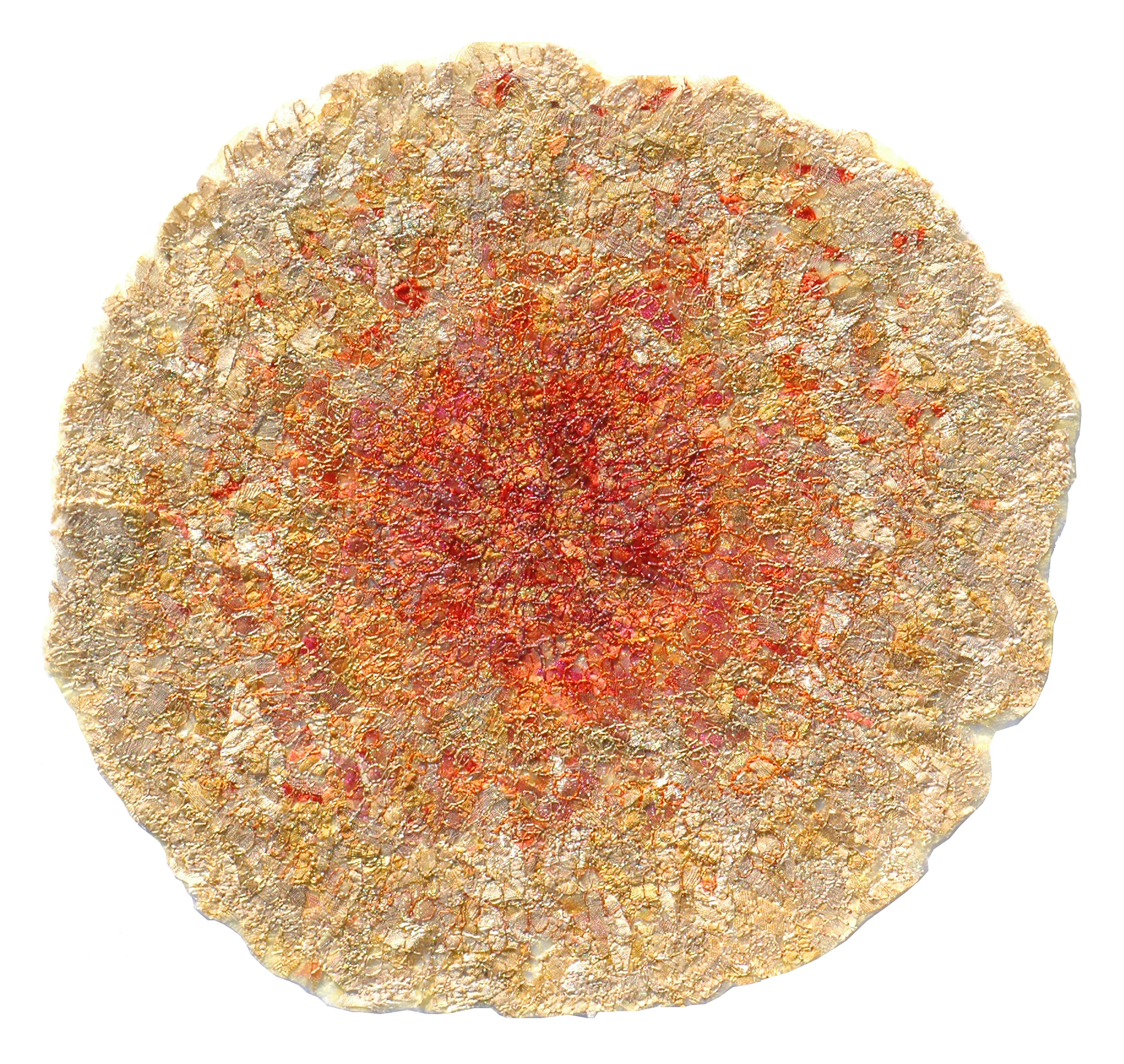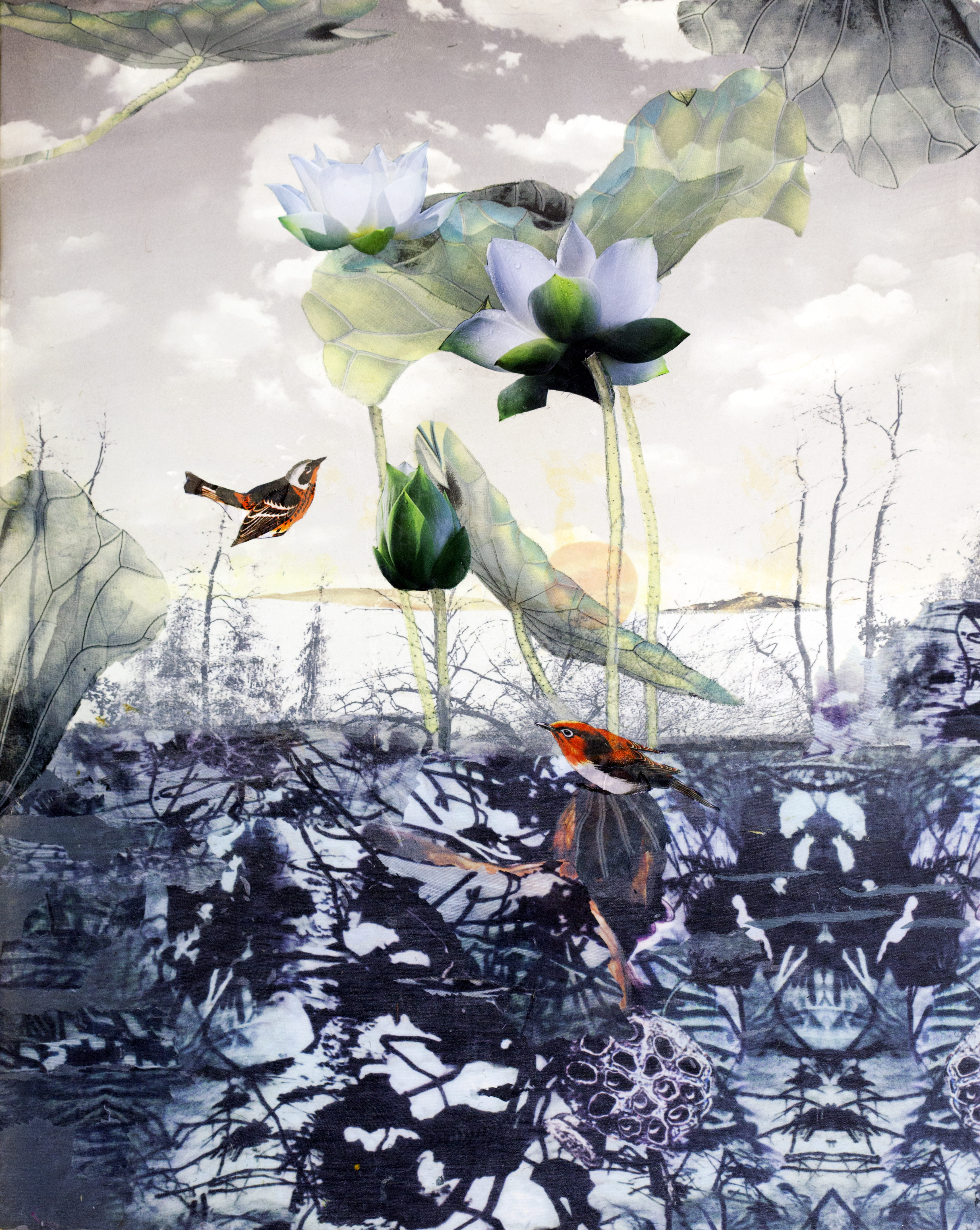 Thêu cũng là một tác nhân không thể thiếu trong suốt hành trình ấy. Các tác phẩm của Catherine Juillerat làm nổi bật cả hai phương tiện truyền thống - sự mỏng manh của vải và nét phức tạp trong thêu. Tác phẩm: Giai điệu mùa xuân - Catherine Juillerat. |
