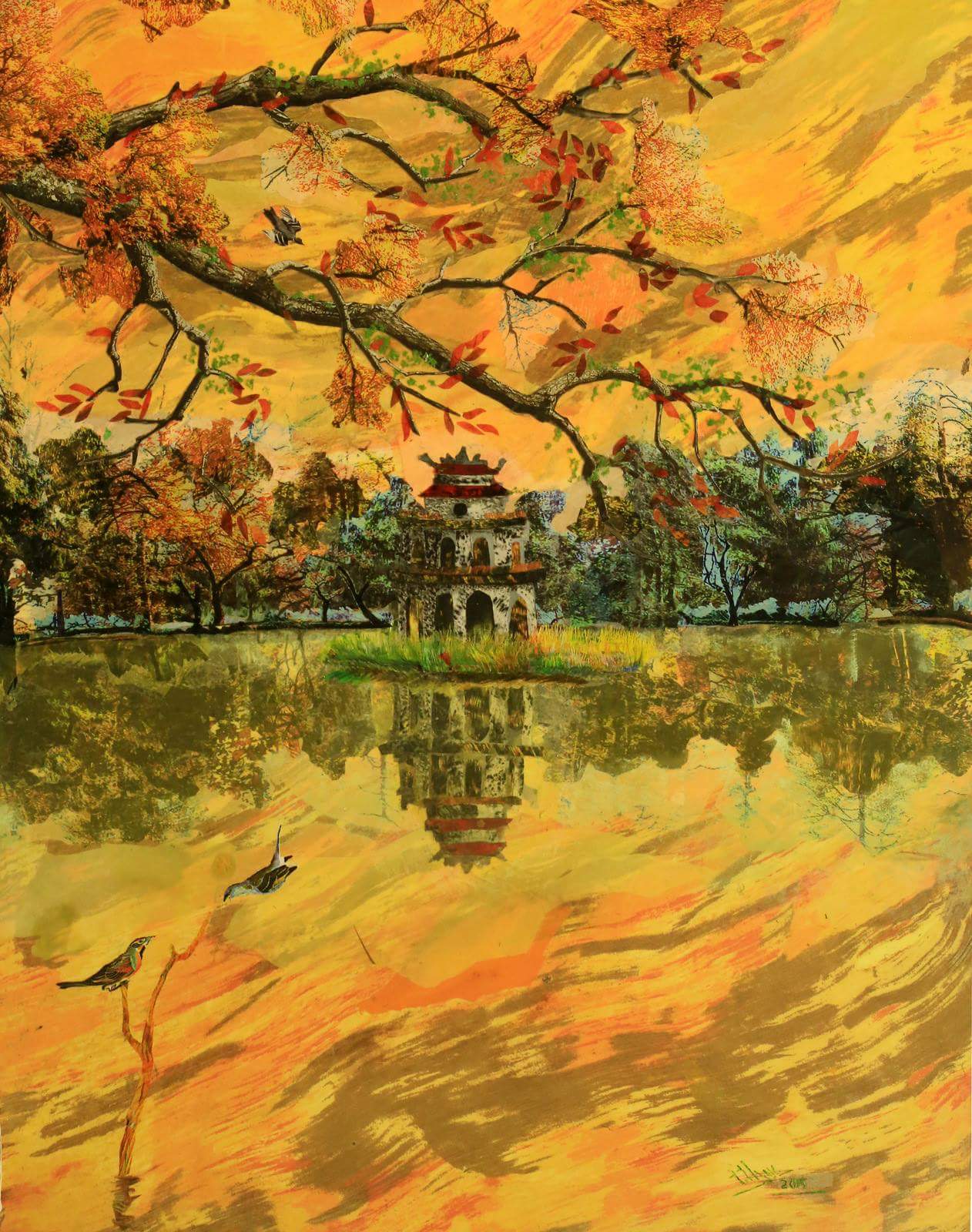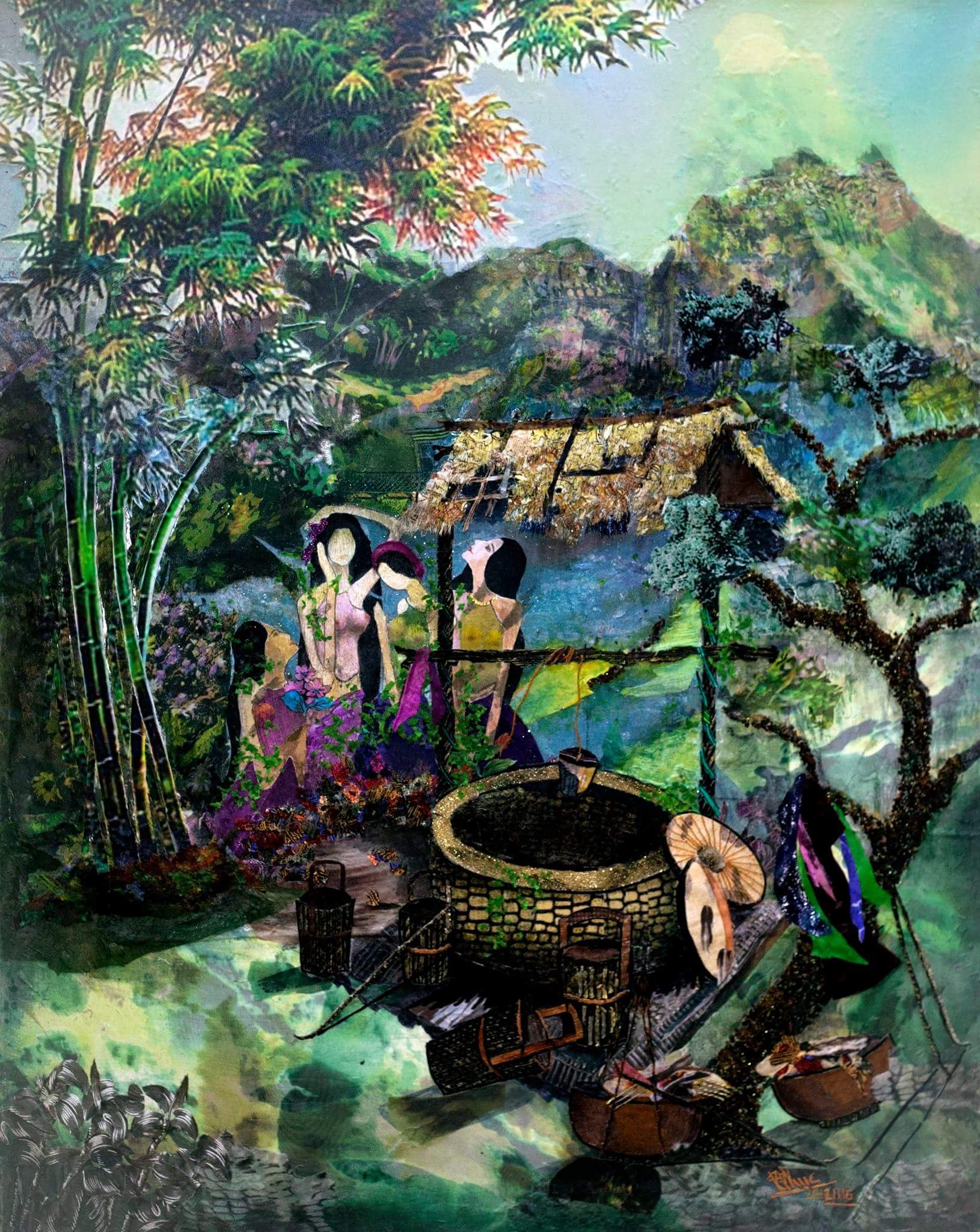 Triển lãm mở cửa từ 11:00 - 19:00 hàng ngày, từ 02/01/2018 đến 31/01/2018, Hương Ngô Art Space, tầng 3 Nola café, 89 Mã Mây, Hoàn Kiếm, Hà Nội. Tác phẩm Bên giếng cổ - Thanh Thục. |