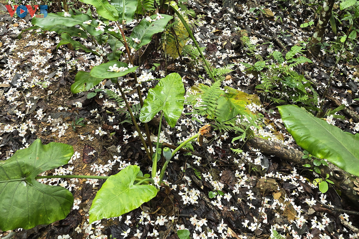 | Hoa trẩu trắng rụng đầy sau cơn mưa. |