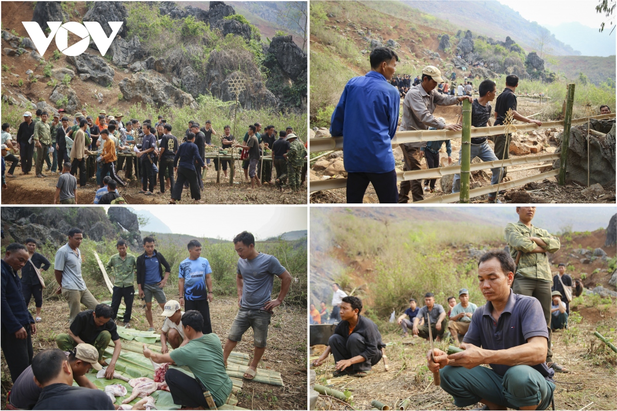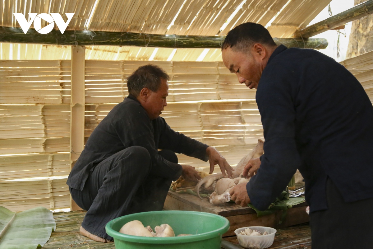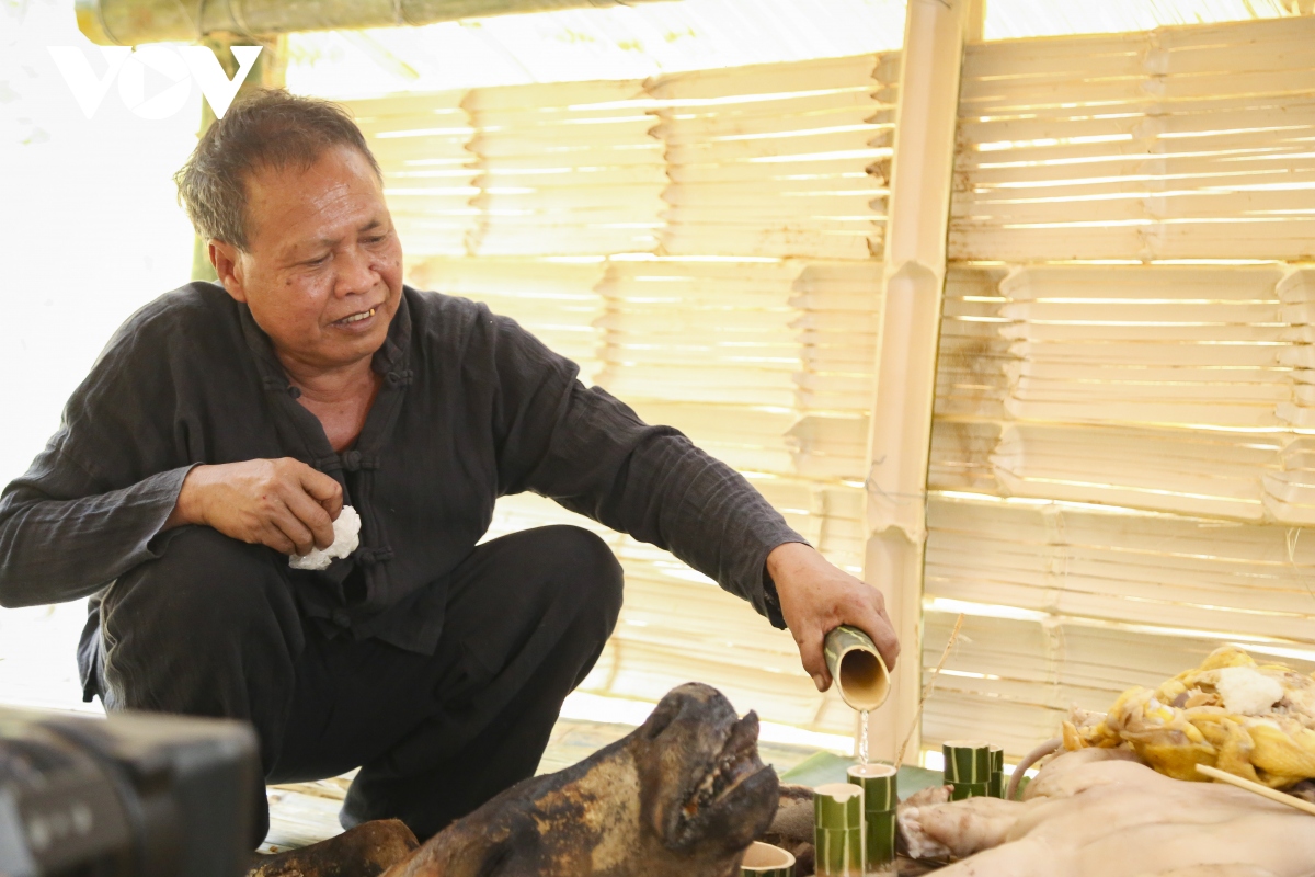 | Sau khi xin quẻ âm dương, được chấp thuận mở lễ, mọi người trong bản tiến hành chế biến, nấu chín các lễ vật. |