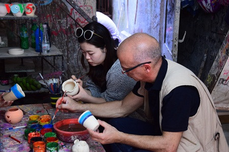 Dịch vụ này có mặt ở Bát Tràng khoảng 10 năm nay, thu hút các bạn trẻ và khách du lịch muốn tự sáng tạo sản phẩm gốm. Mỗi một người có thể vuốt, nặn, vẽ thỏa thích, không giới hạn thời gian, chỉ tính tiền theo sản phẩm.