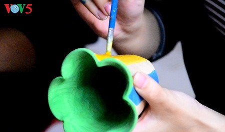 Du khách có thể sấy sản phẩm và vẽ tạo hình rồi sơn bóng để mang về bày trang trí với mức phí mỗi sản phẩm giao động từ 30.000 đến 50.000 đồng