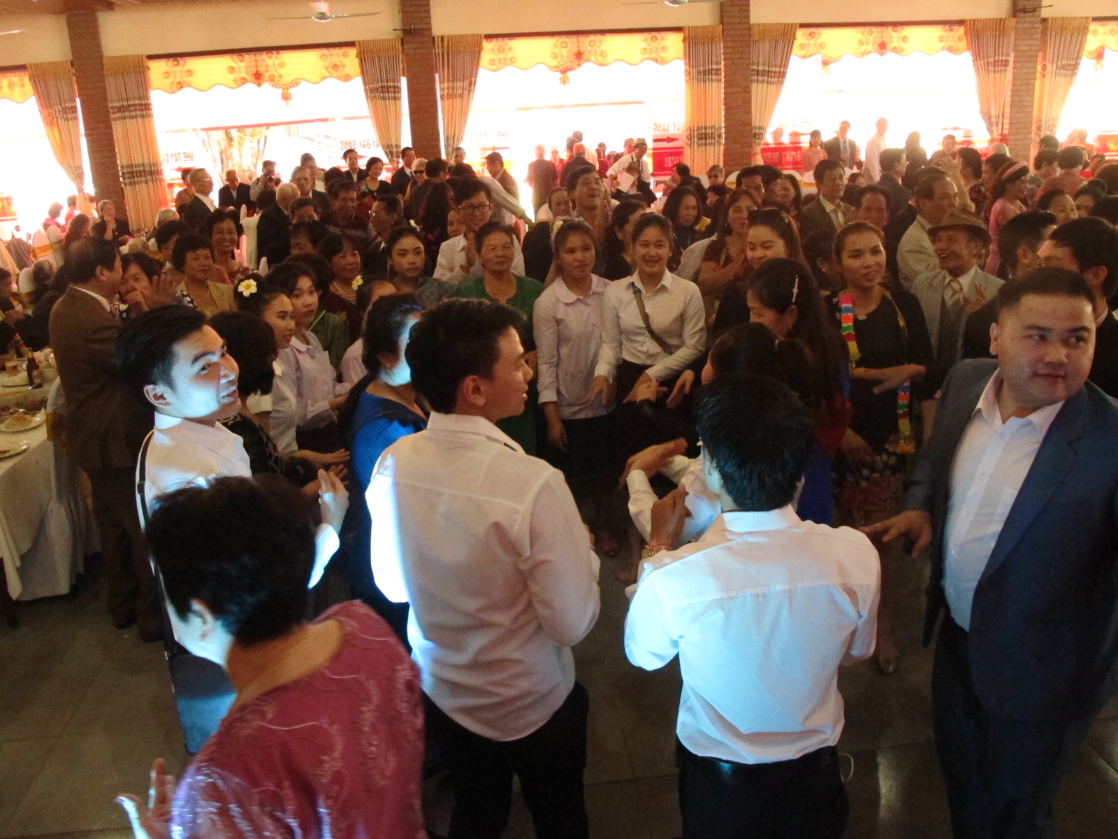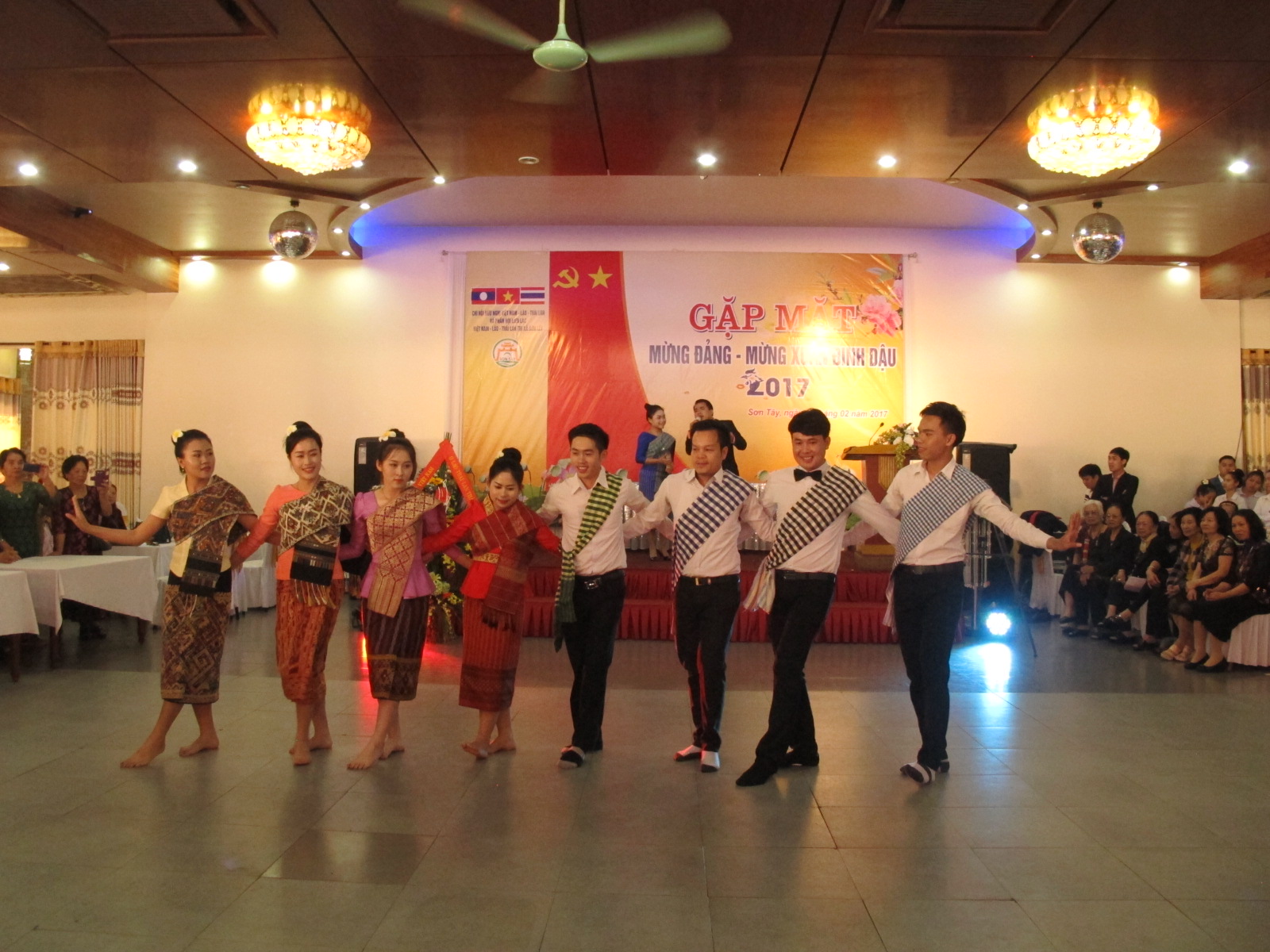 Kết thúc chương trình các kiều bào và sinh viên Lào – Thái cùng nắm tay nhau ca hát và nhảy múa các bài hát quen thuộc của ba dân tộc Việt Nam, Lào và Thái Lan.