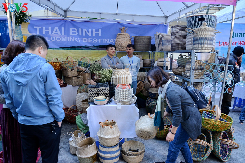 | Gian hàng của tỉnh Thái Bình đem tới lễ hội những sản phẩm dệt cói thủ công mỹ nghệ. |