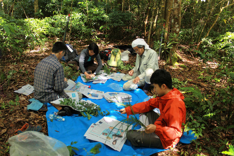 Các chuyên gia thu thập mẫu thực vật trong rừng. Ảnh: Vườn Quốc gia Biduop - Núi Bà cung cấp |