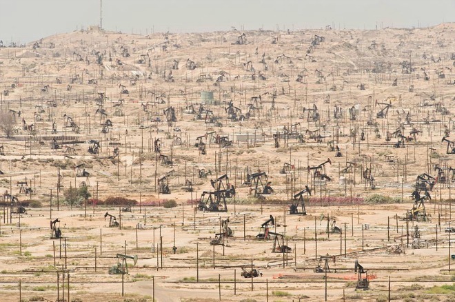 Công trường khai thác dầu ở sông Kern, bang California, Mỹ, bắt đầu hoạt động từ năm 1899. Khắp một vùng đất rộng lớn trơ trọi bóng cây và hàng nghìn mũi khoan dầu đâm sâu vào lòng đất, lấy nhiên liệu phục vụ con người. Nguồn: Bored panda |