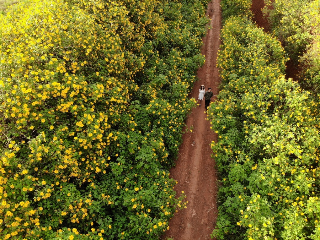 Cách trung tâm thành phố khoảng 25 km, con đường hoa dã quỳ dài 500 m ở xã Đạ Ròn, huyện Đơn Dương là điểm ngắm hoa hút du khách đến chụp ảnh, tham quan cứ độ cuối tháng 10 đến tháng 11. Ảnh: VNExpress