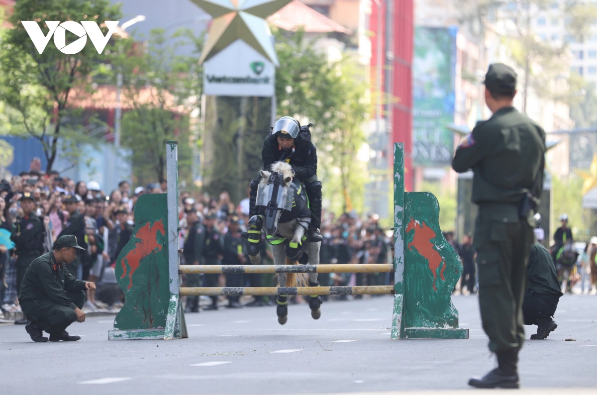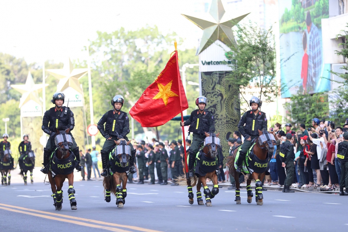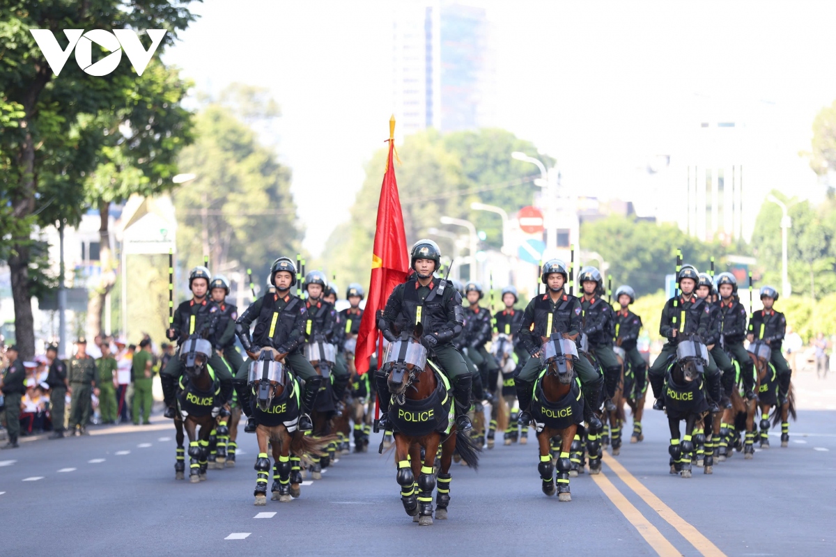 Tuy nhiên hấp dẫn người xem nhất vẫn là màn diễu hành kỵ binh, biểu diễn các kỹ thuật điều khiển ngựa phục vụ công tác tấn công trấn áp tội phạm của các chiến sĩ Cảnh sát cơ động.