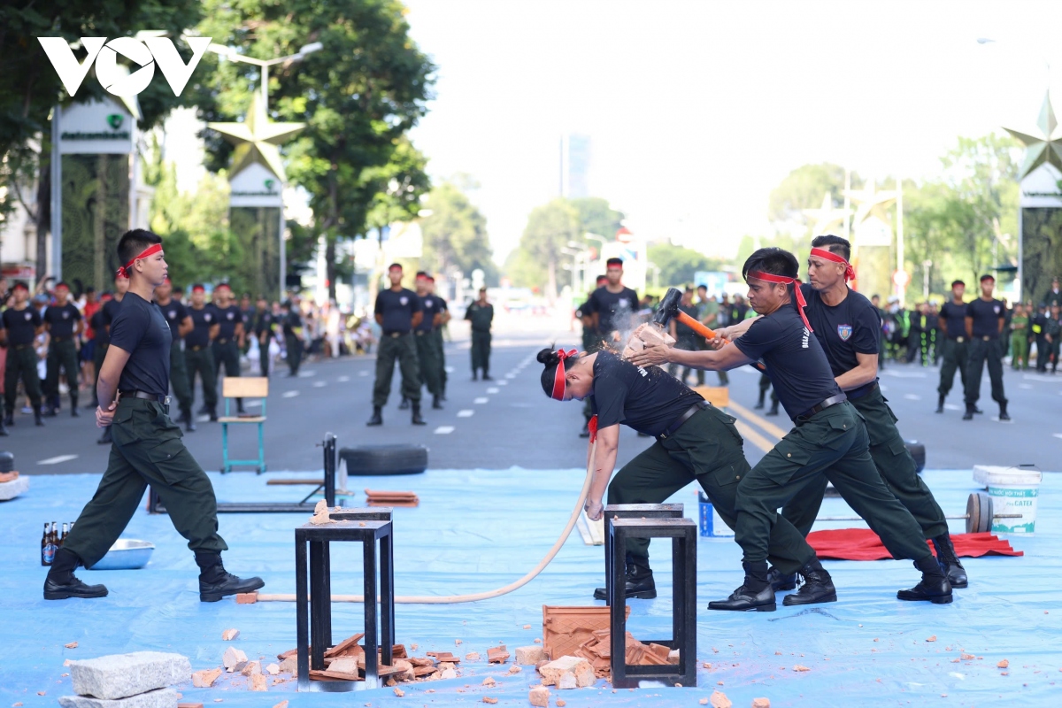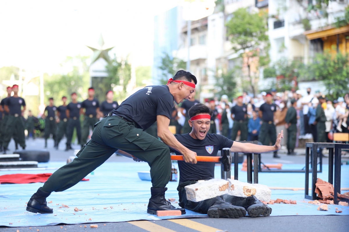 Lần đầu tiên, người dân TP.HCM và du "mãn nhãn" chứng kiến các chiến sĩ cảnh sát cơ động, cảnh sát đặc nhiệm… biểu diễn các màn võ thuật, khí công ngay trên đường phố.