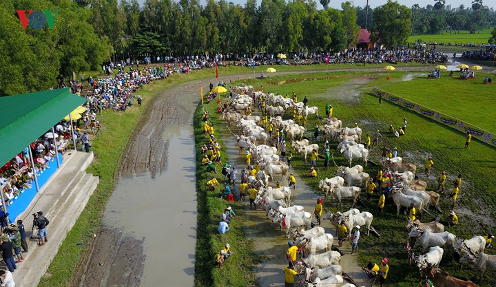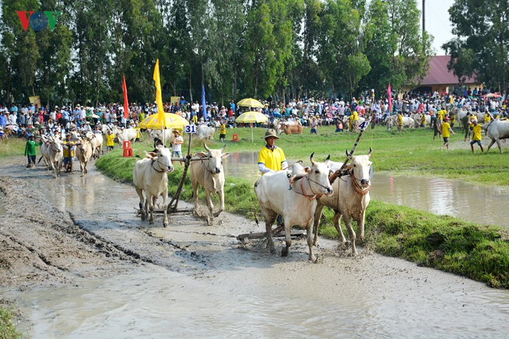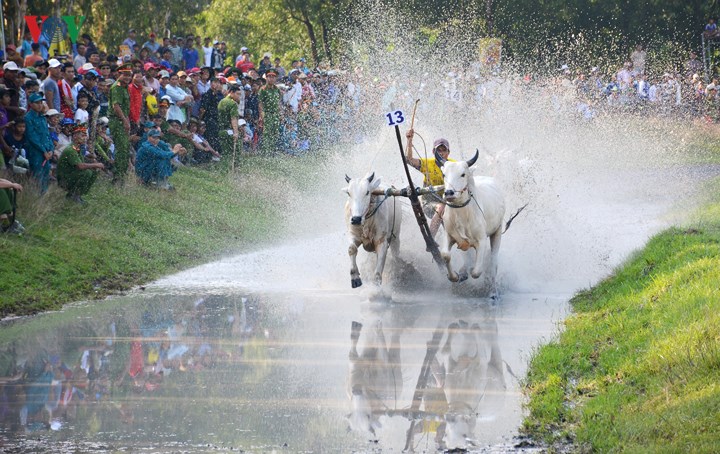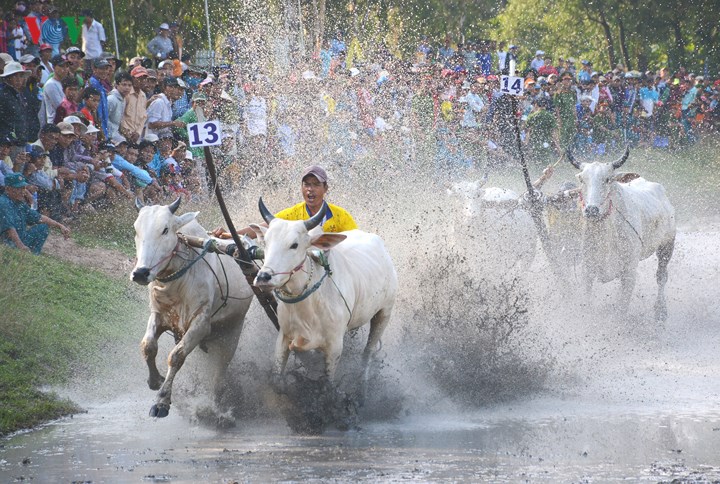 Lễ hội đua bò Bảy Núi hàng năm thu hút hàng ngàn người đến xem và cổ vũ cho các cặp bò đua.