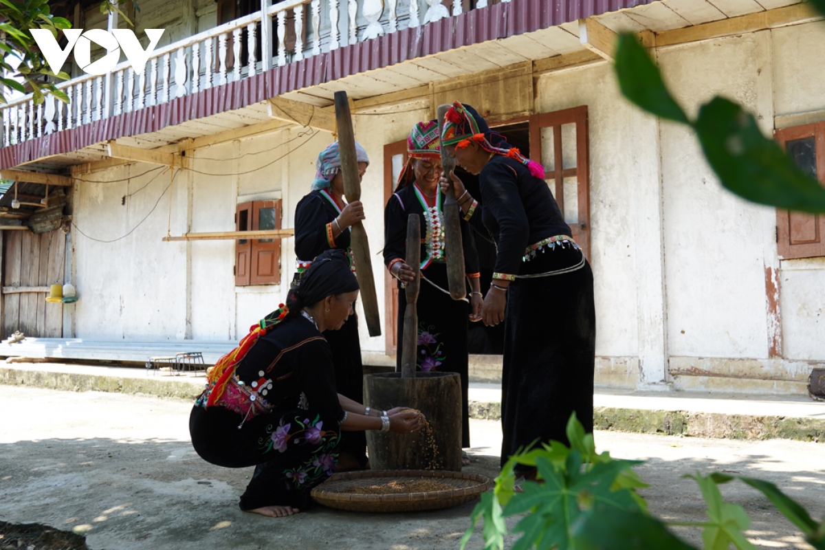 ...cốm làm lễ mừng lúa mới được giã bằng tay theo phong tục truyền thống dân tộc. |