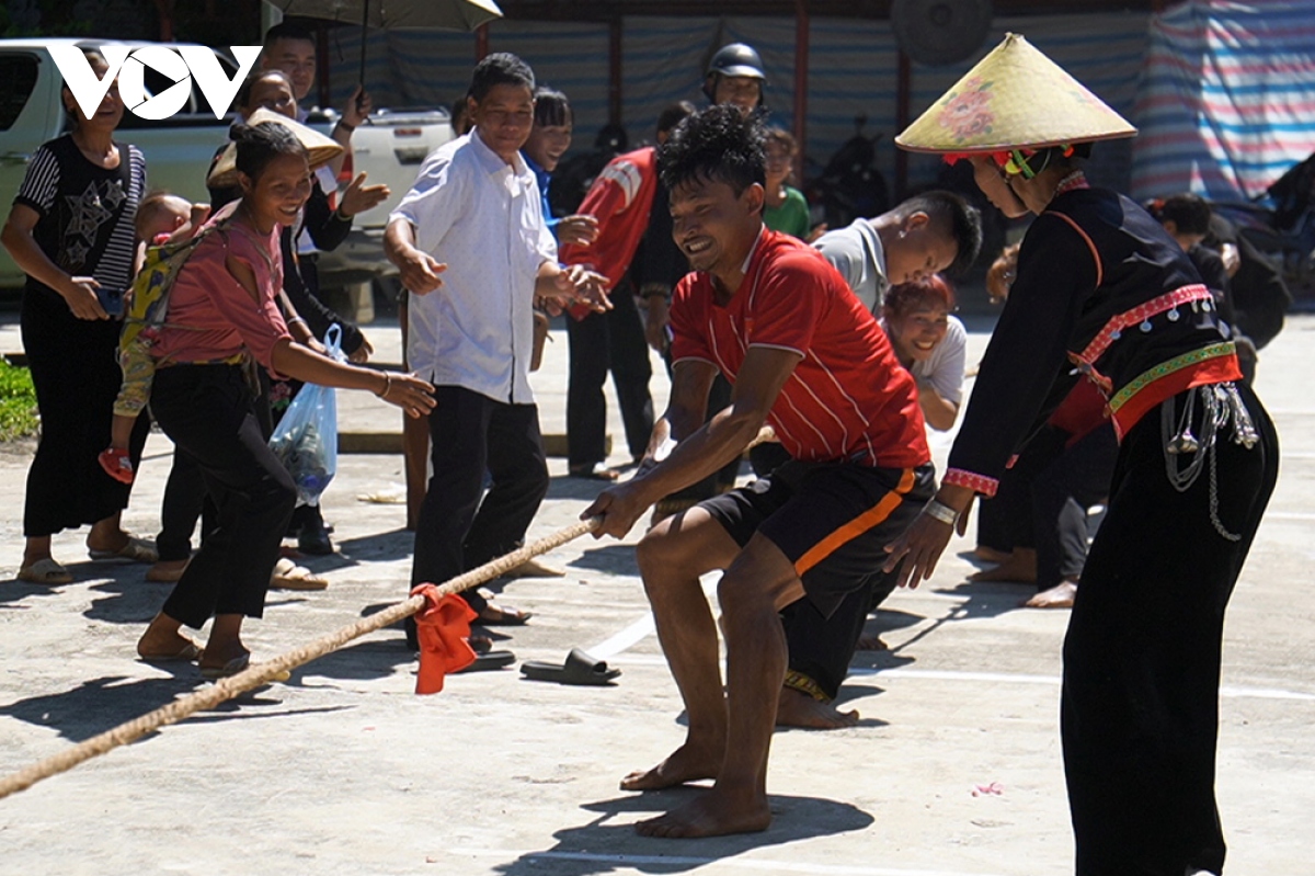 Đây là dịp để bà con Khơ Mú vui chơi các trò chơi dân gian truyền thống như đẩy gậy, kéo co... |