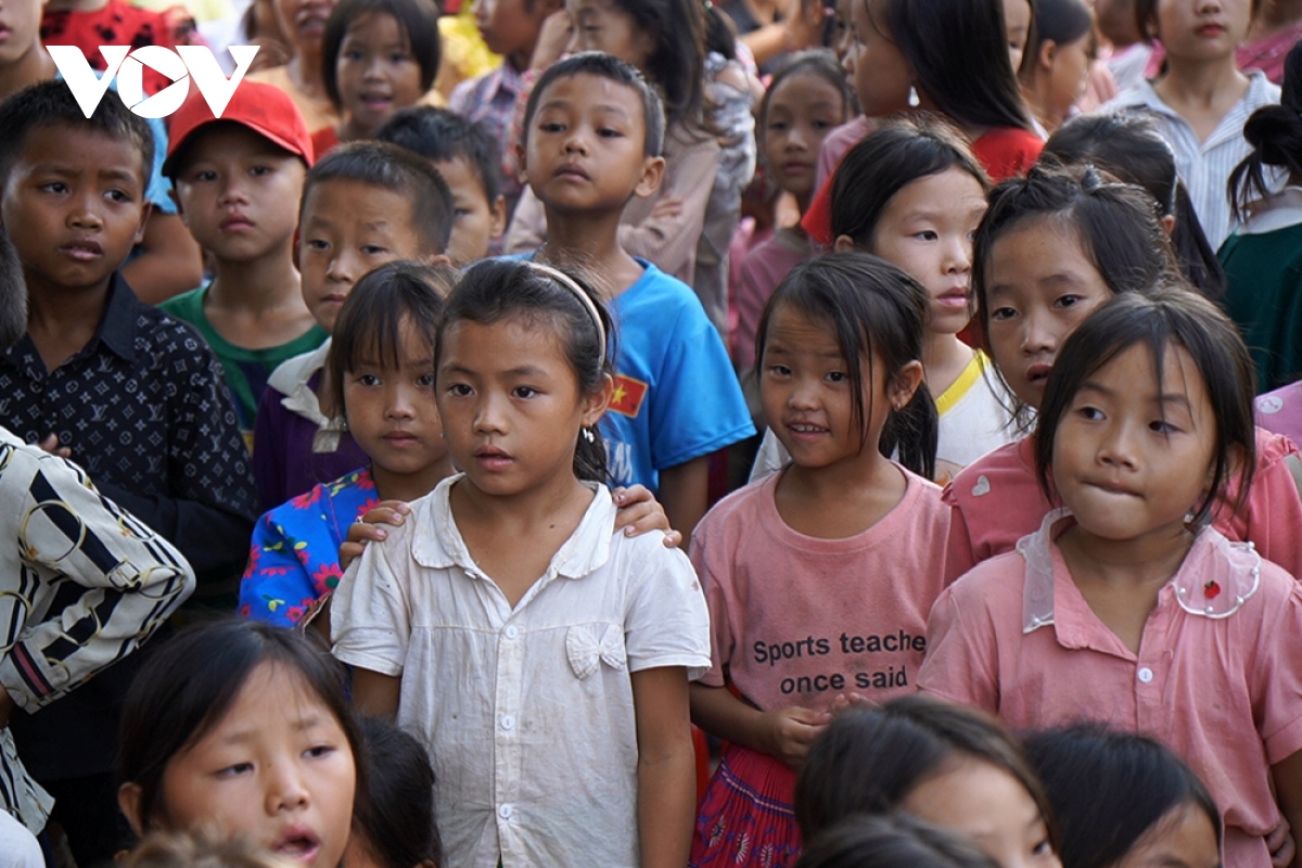 Đông đảo trẻ em tới xem và tham gia lễ hội với vẻ mặt thích thú. |