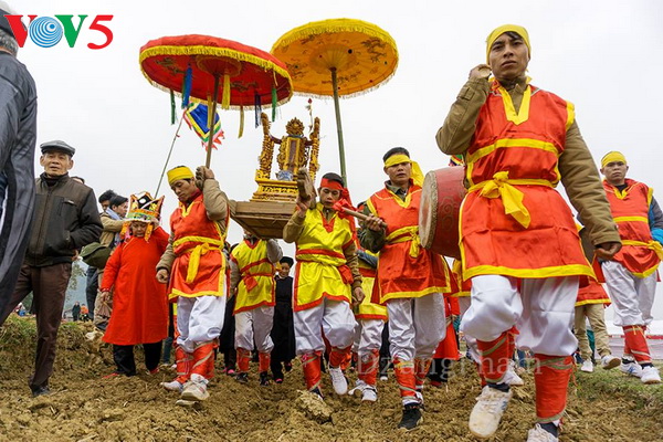 Sau đó rước về đình Làng Mỏ (Ảnh: Phạm Quốc Dũng)
