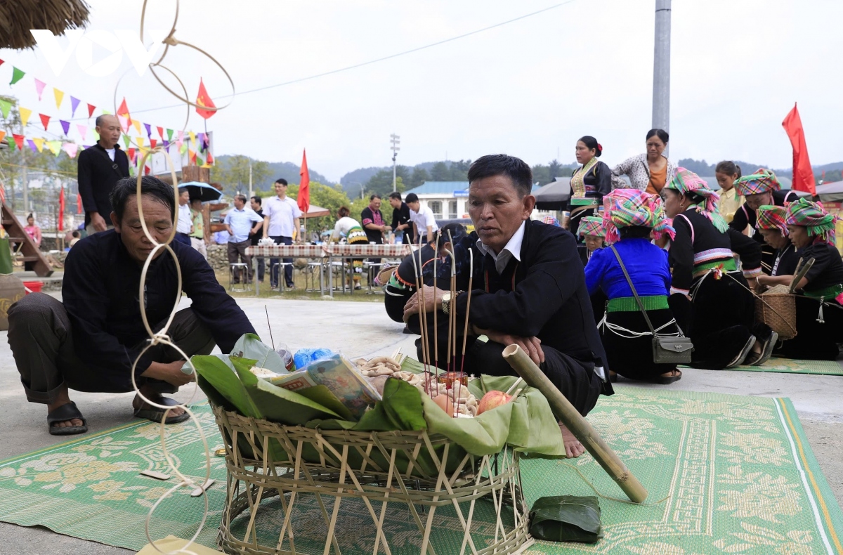 Nghi thức mời cơm được chủ lễ dùng tay vít cần rượu mồi cho rượu chảy ra rồi khấn mời tổ tiên, thần linh hưởng lễ, khấn xin tổ tiên tiếp tục phù hộ cho gia đình, bản làng được mọi điều tốt đẹp. |