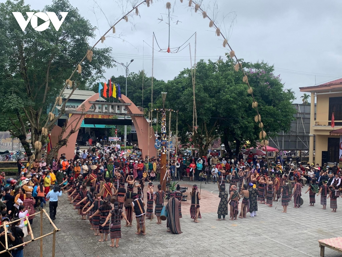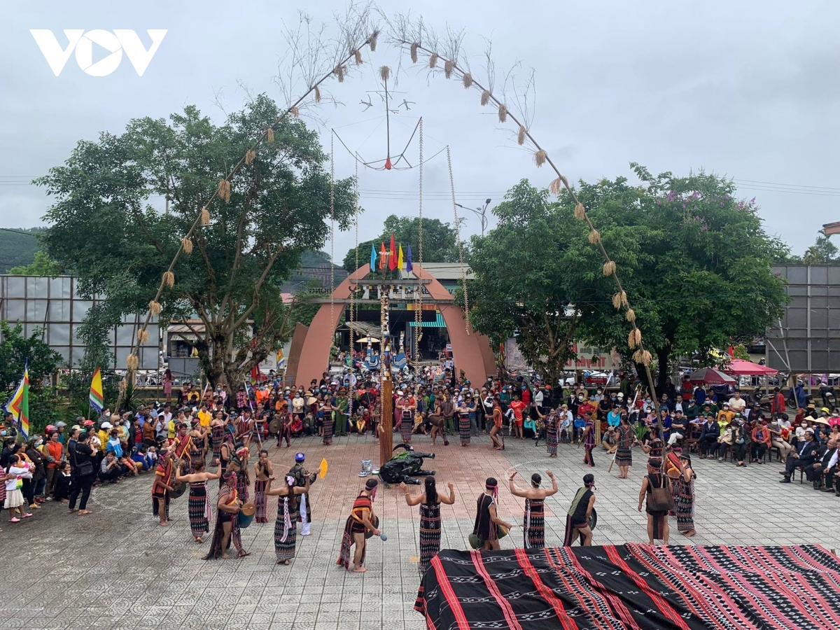 Đông đảo người dân đến xem tái hiện lễ Mừng cơm mới của đồng bào Cơ Tu.