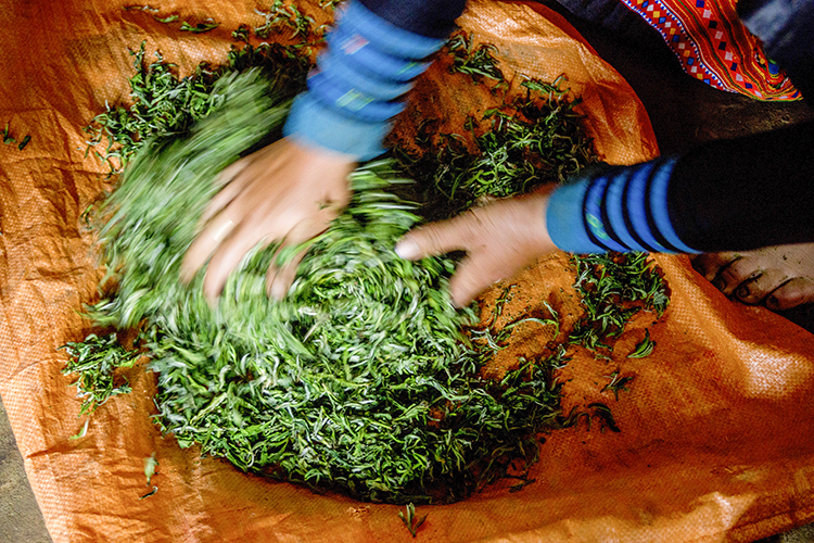 Chè hái về tãi ra sạp phơi tạm, thỉnh thoảng phải đảo cho khô đều. Ảnh: VOV