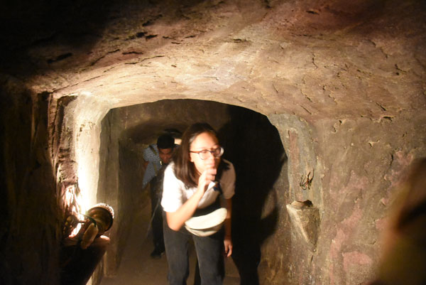 Các bạn trẻ trải nghiệm thực tế địa đạo |