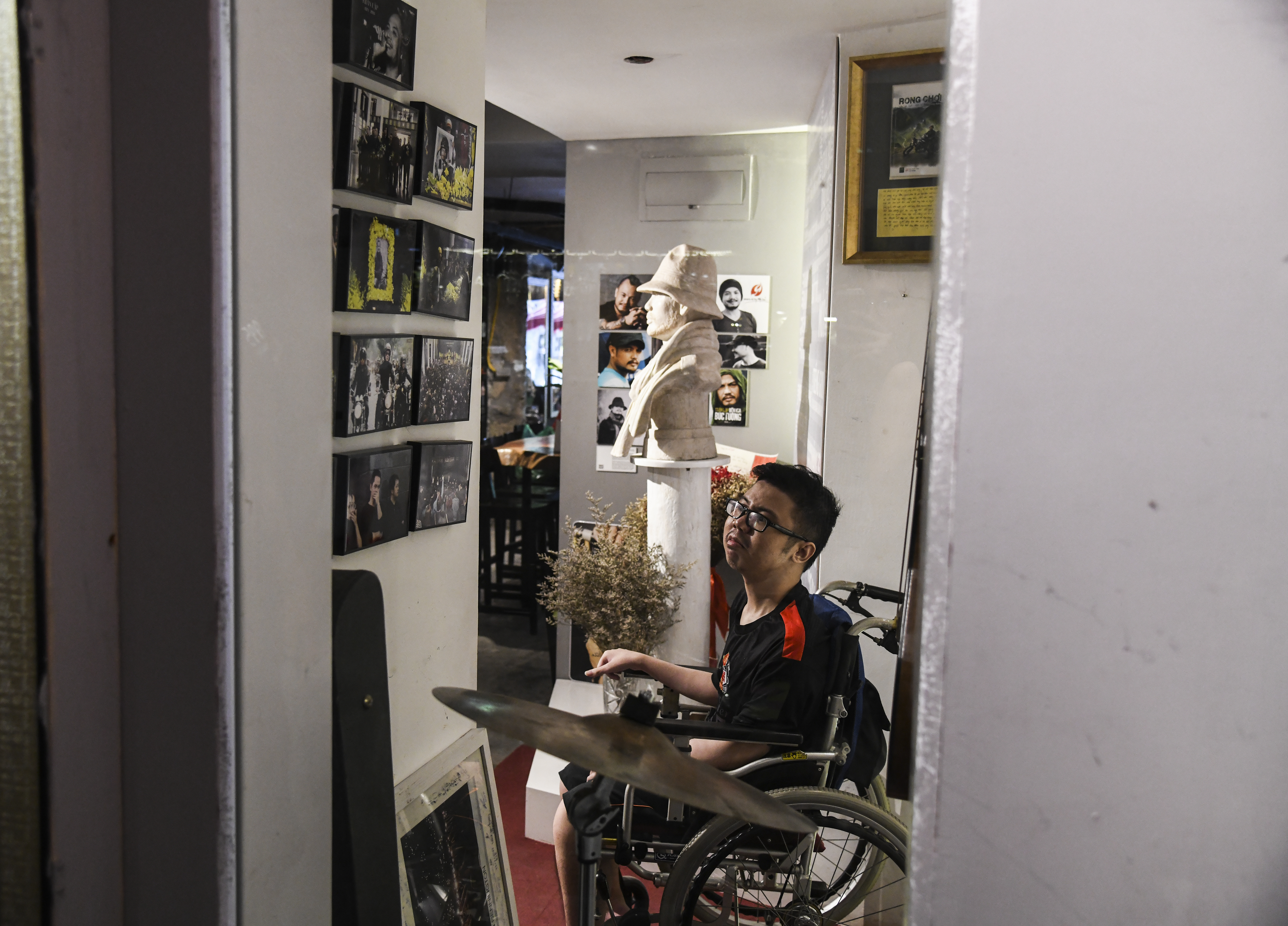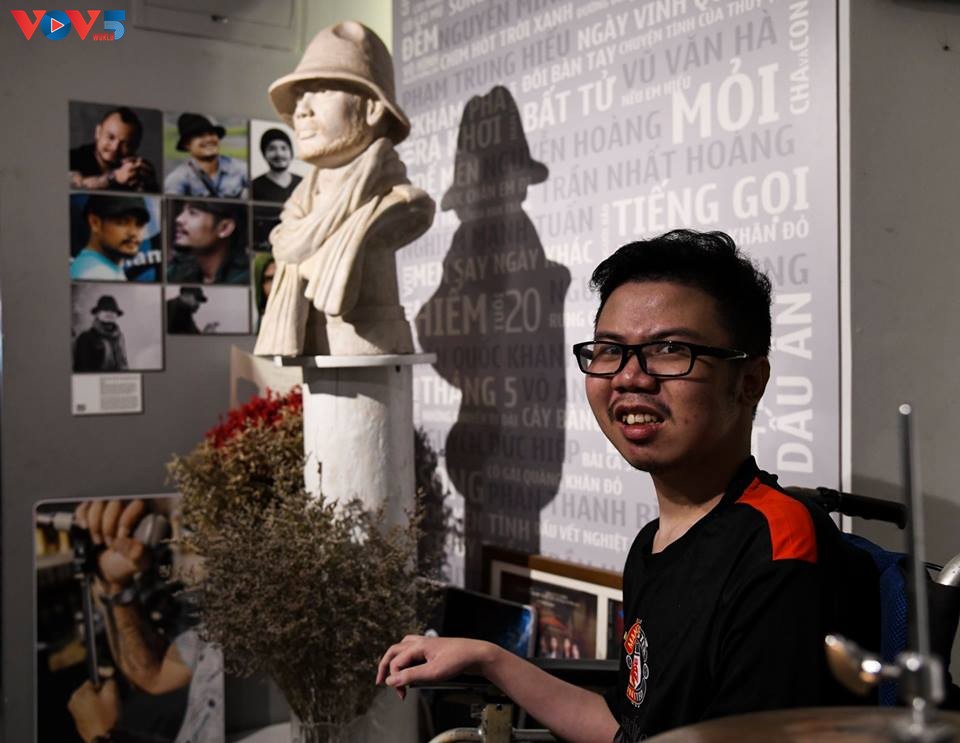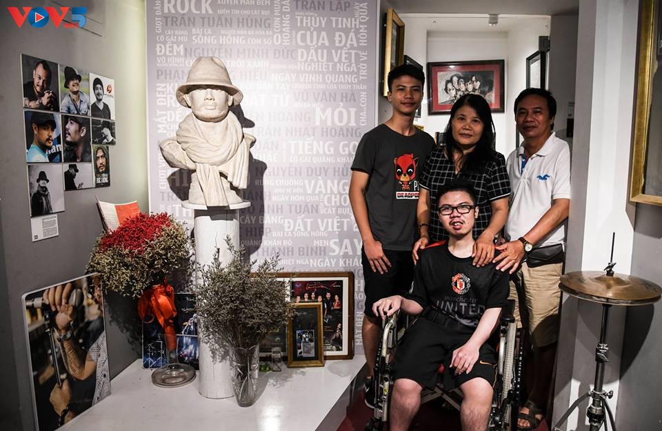 Và hôm nay, ở đây, trên chiếc xe lăn, đối diện bức tượng Trần Lập, cậu cất tiếng hát như một lời tri ân khiến ai cũng cảm động.