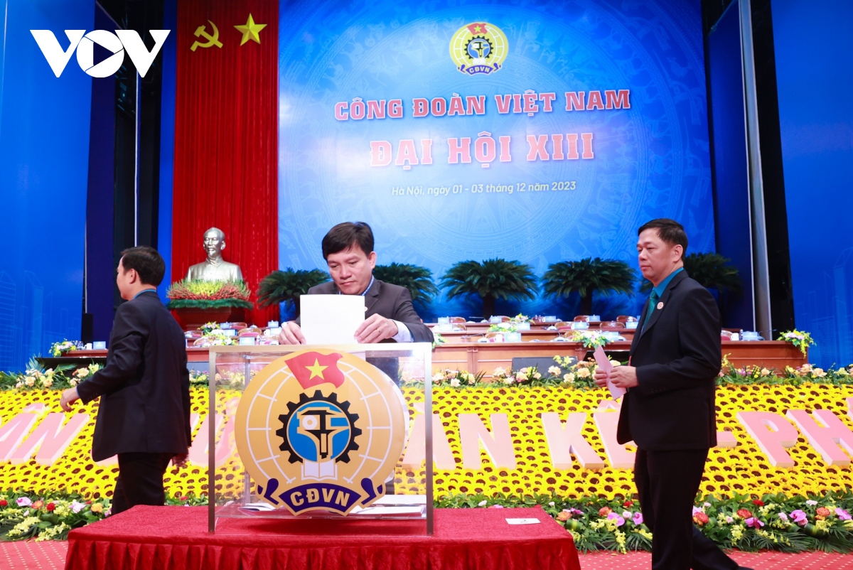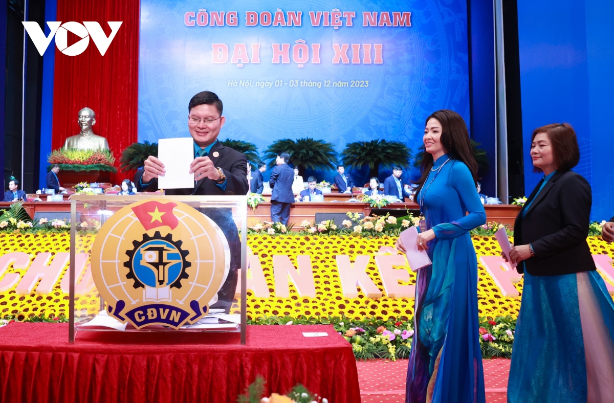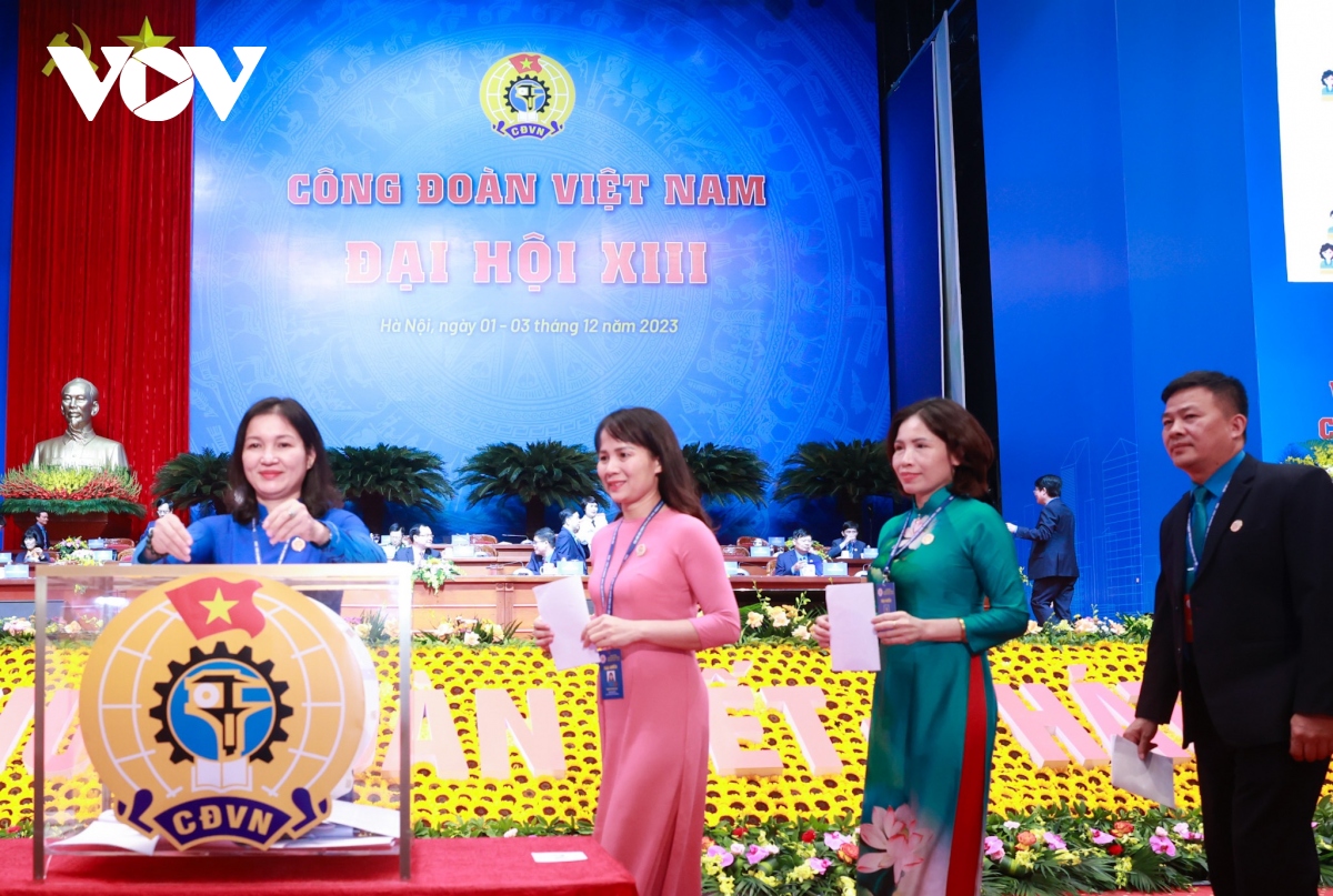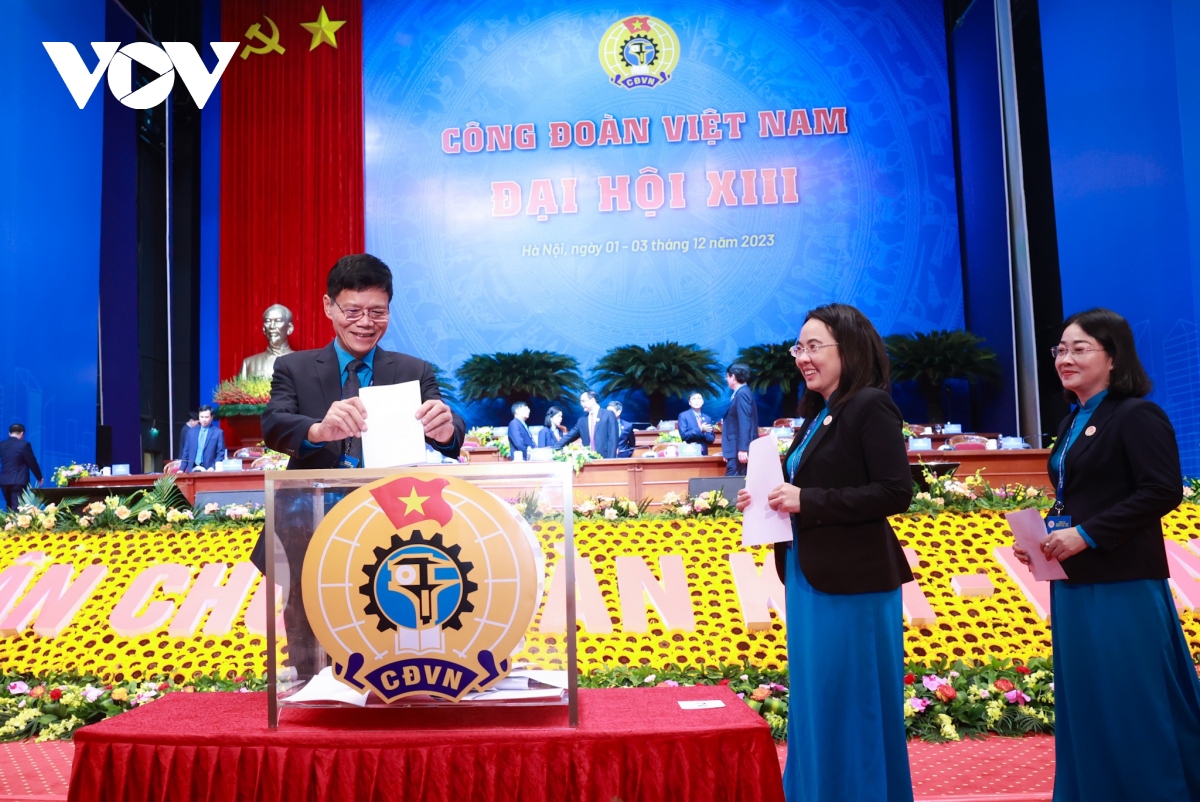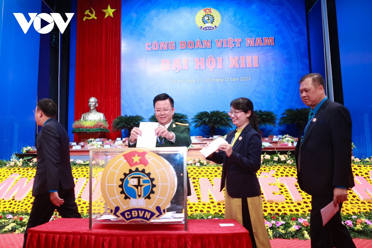Sau khi thảo luận tại tổ, Đại hội đã nghe Đoàn Chủ tịch Đại hội thông qua Đề án nhân sự, tiến hành biểu quyết. 100% đại biểu nhất trí với Đề án nhân sự Ban Chấp hành Tổng LĐLĐ Việt Nam khóa XIII do Ban Chấp hành Tổng LĐLĐ Việt Nam khóa XII chuẩn bị.