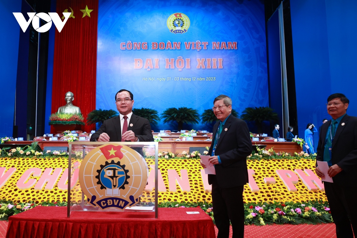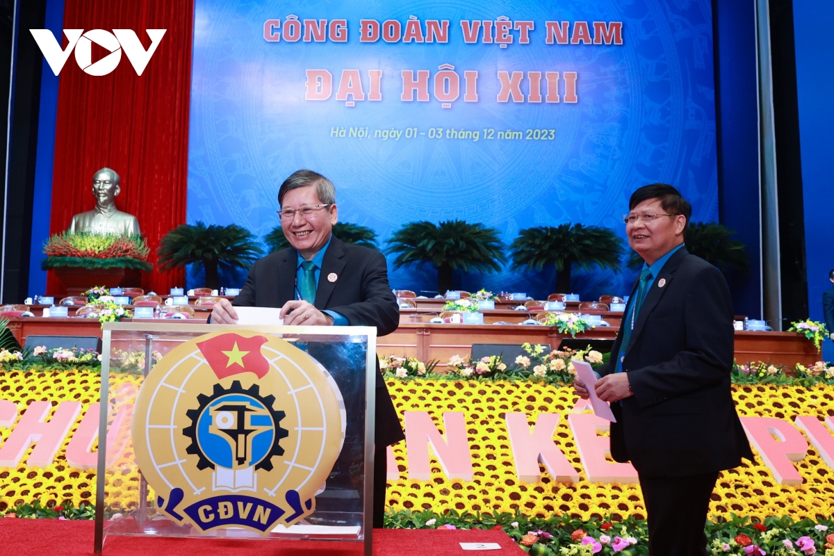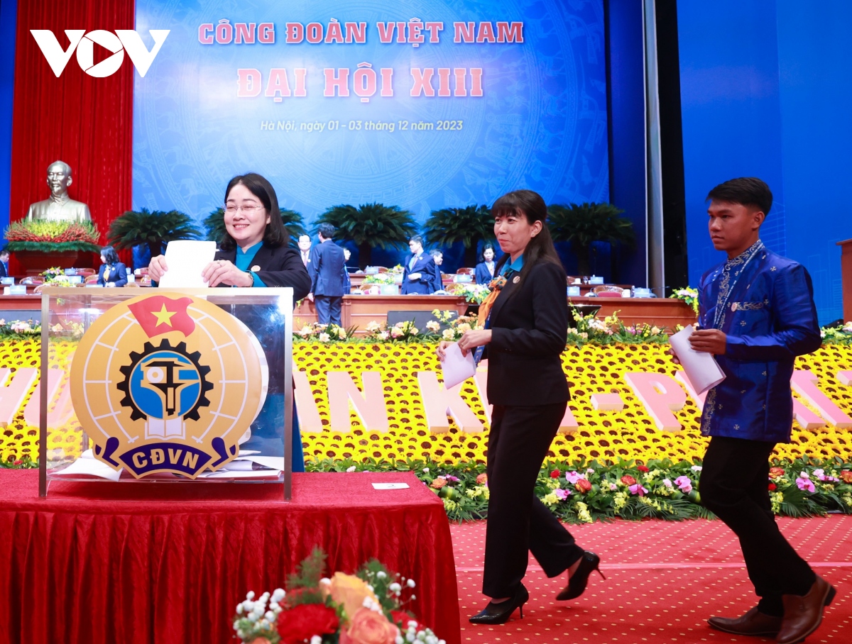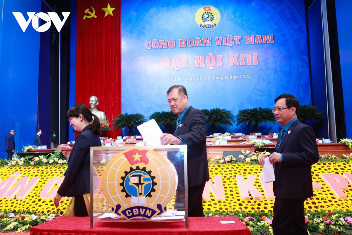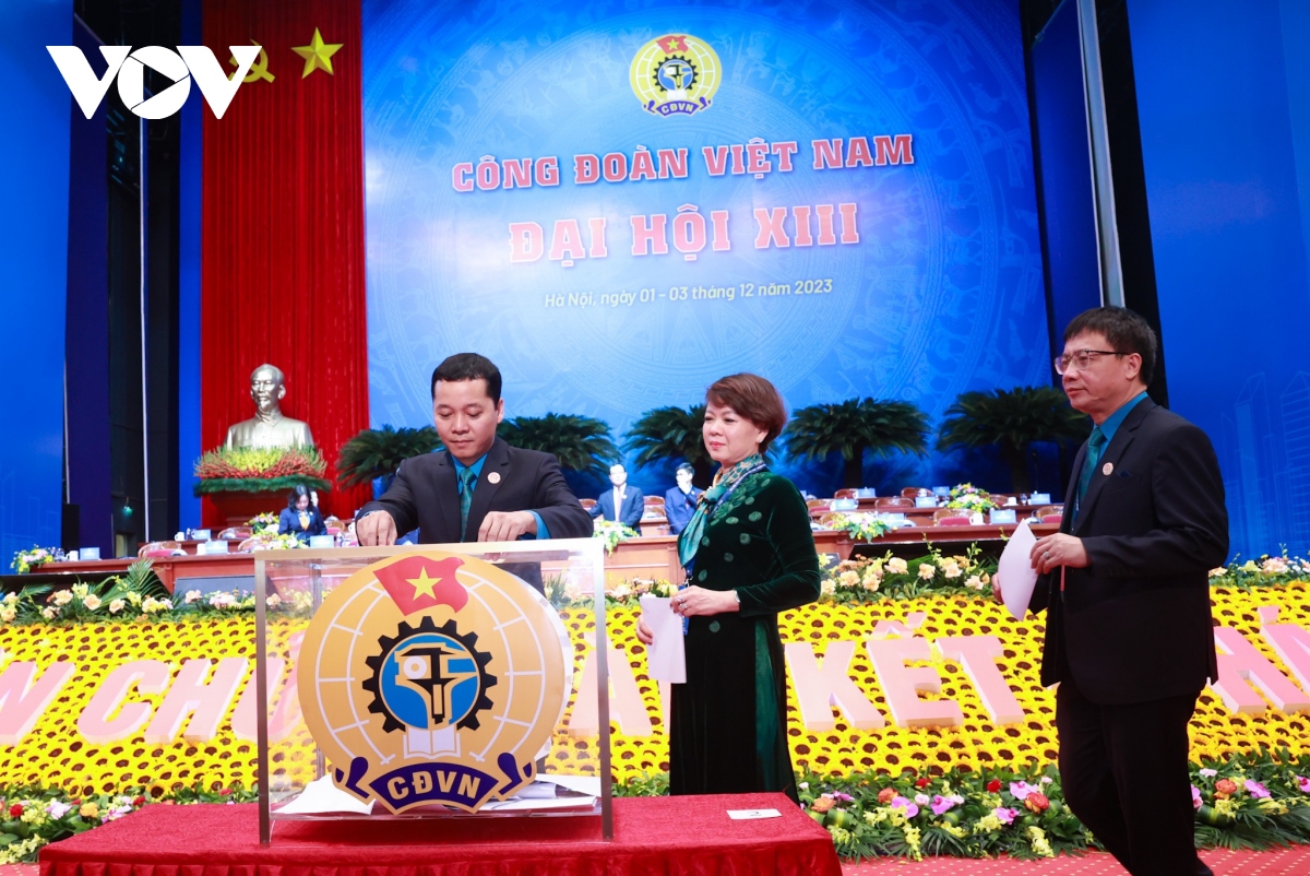 Sau khi thảo luận tại tổ, Đại hội đã nghe Đoàn Chủ tịch Đại hội thông qua Đề án nhân sự, tiến hành biểu quyết. 100% đại biểu nhất trí với Đề án nhân sự Ban Chấp hành Tổng LĐLĐ Việt Nam khóa XIII do Ban Chấp hành Tổng LĐLĐ Việt Nam khóa XII chuẩn bị.