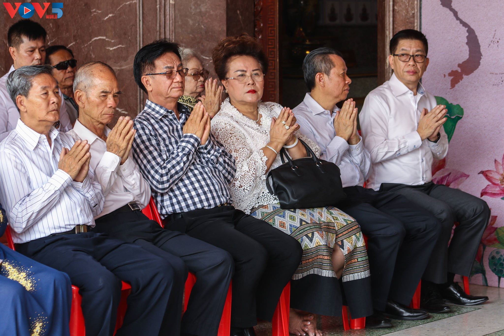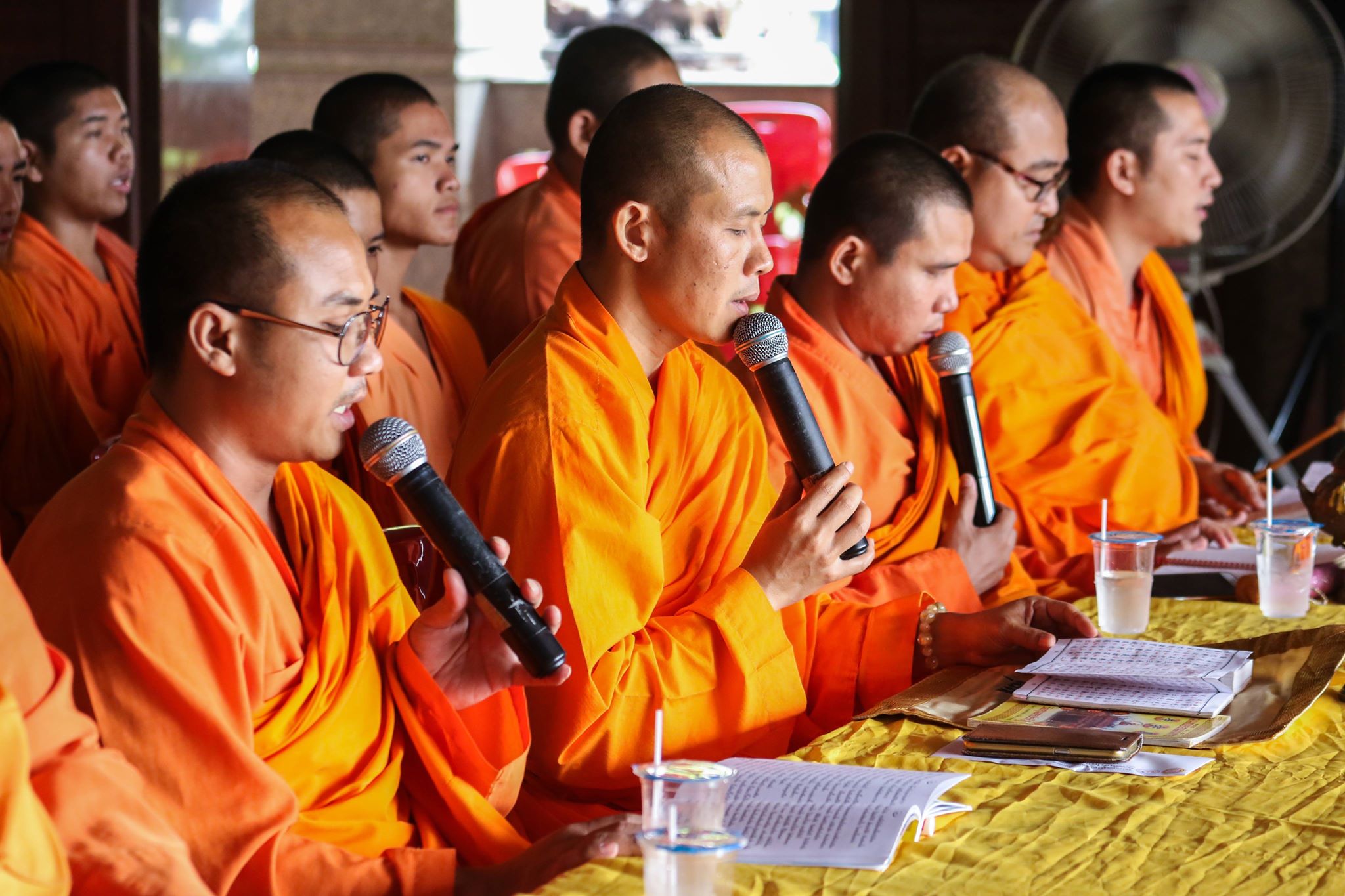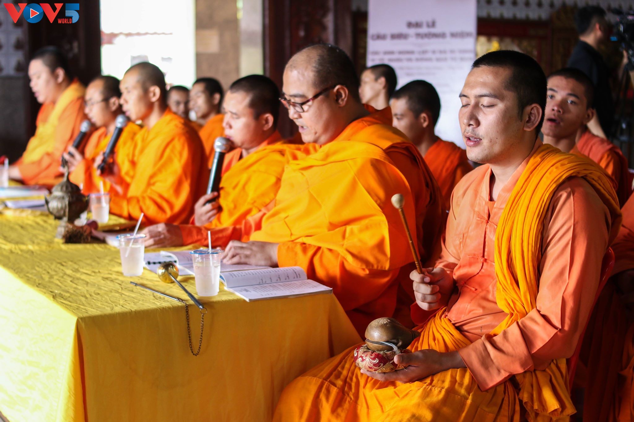 Hòa thượng Thích Thiện Thật (thứ 2 từ trái sang), Phó Tăng trưởng Phật giáo Việt tông kiêm Trụ trì chùa Khánh An cùng toàn thể các nhà sư, tăng sinh chùa Khánh An đã trang trọng tiến hành các nghi lễ cầu siêu.