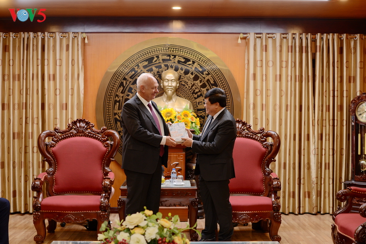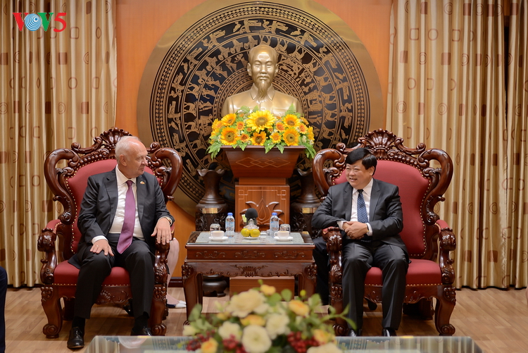 | Tại buổi tiếp, hai bên vui mừng trước sự phát triển tốt đẹp quan hệ hữu nghị truyền thống giữa Việt Nam và Liên bang Nga trong tất cả các lĩnh vực, cũng như sự hợp tác giữa Đài Tiếng nói Việt Nam và Đài Tiếng nói nước Nga (nay là Đài Sputnik) trong thời gian qua. |